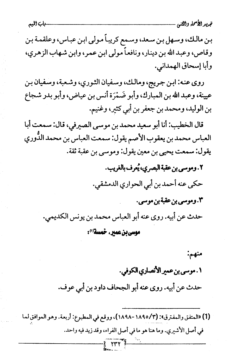 (¬1) «المتفق والمفترق»: (3/ 1895 - 1898)، ووقع في المطبوع: أربعة. وهو الموافق لما في أصل الأشيري. وما هنا هو ما في أصل الفراء، وقد زيد فيه واحد.