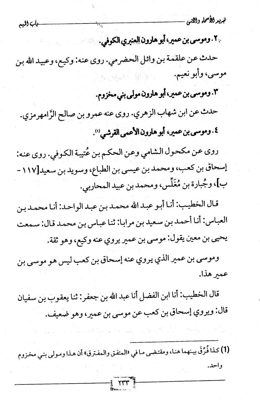 3 - وموسى بن عمير، أبو هارون مولى بني مخزوم.