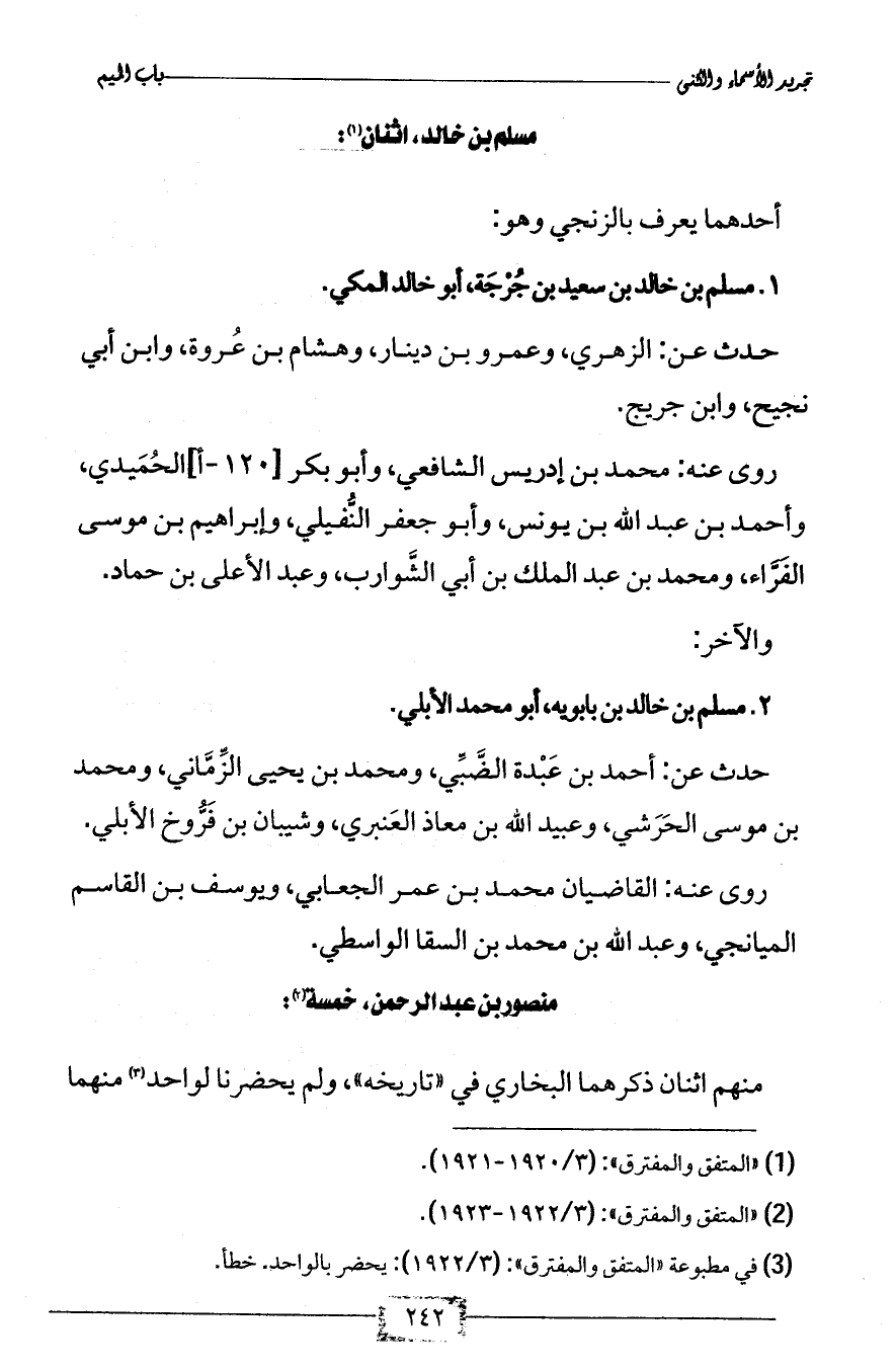 1 - مسلم بن خالد بن سعيد بن جُرْجَة، أبو خالد المكي.