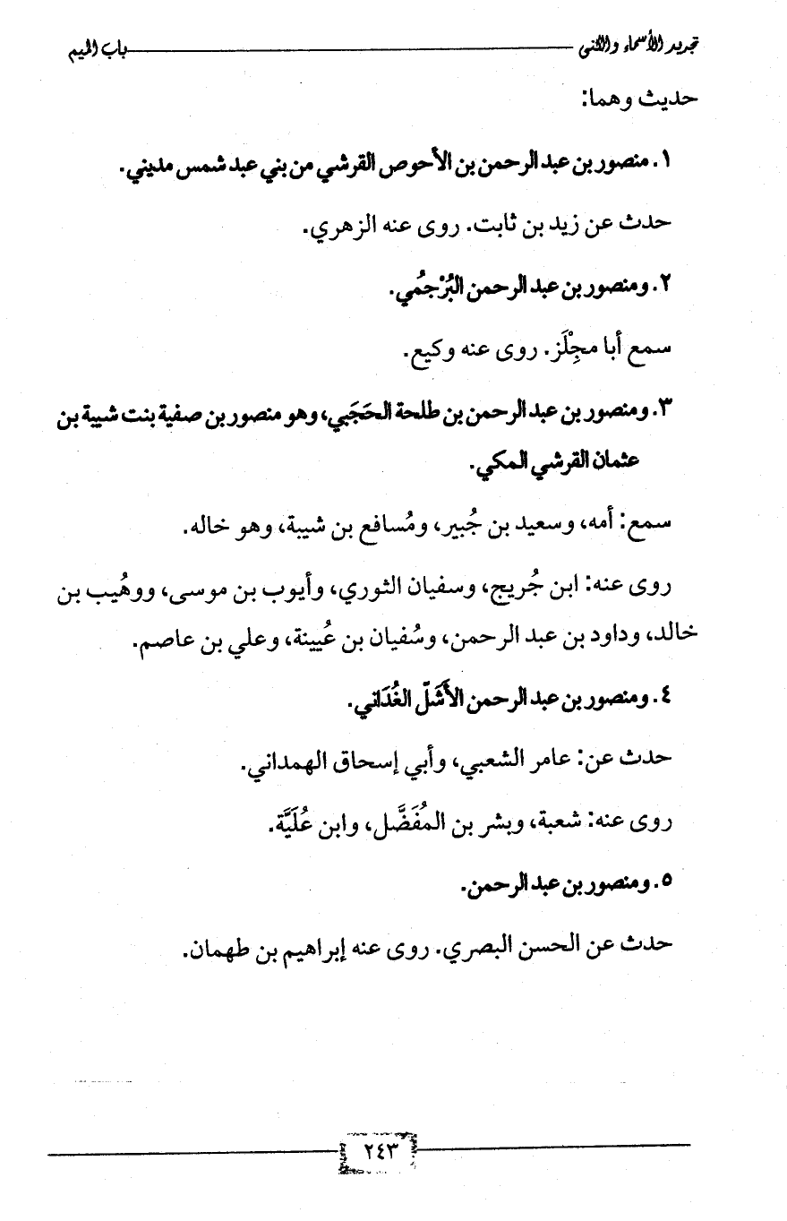 1 - منصور بن عبد الرحمن بن الأحوص القرشي من بني عبد شمس مديني.