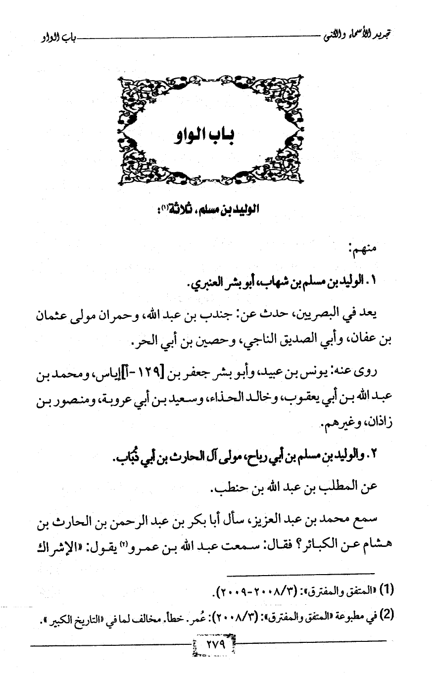 1 - الوليد بن مسلم بن شهاب، أبو بشر العنبري.