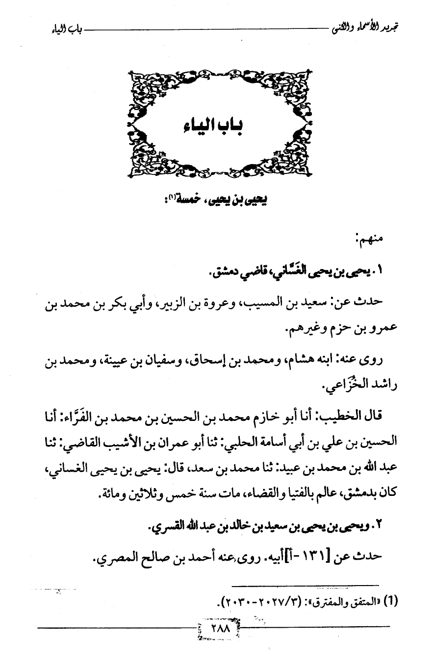 1 - يحيى بن يحيى الغَسَّاني، قاضي دمشق.