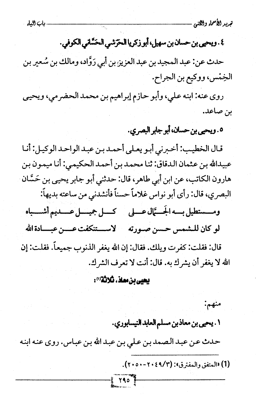 1 - يحيى بن معاذ بن مسلم العابد النيسابوري.