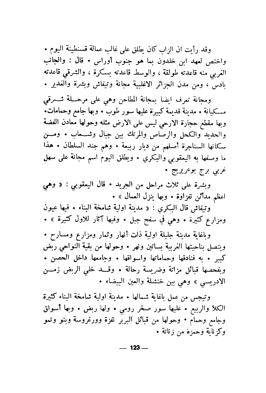 واختص لعهد ابن خلدون بما هو جنوب أوراس. قال: والجانب الغربي منه قاعدته طولقة، والوسط قاعدته بسكرة، والشرقي قاعدته بادس، ومن مدن الجزائر الاغلبية مجانة وتيفاش وبشرة والغدير.