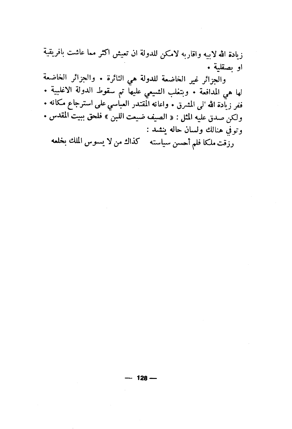 زيادة الله لابيه واقاربه لامكن للدولة ان تعيش اكثر مما عاشت بافريقية او بصقلية.
