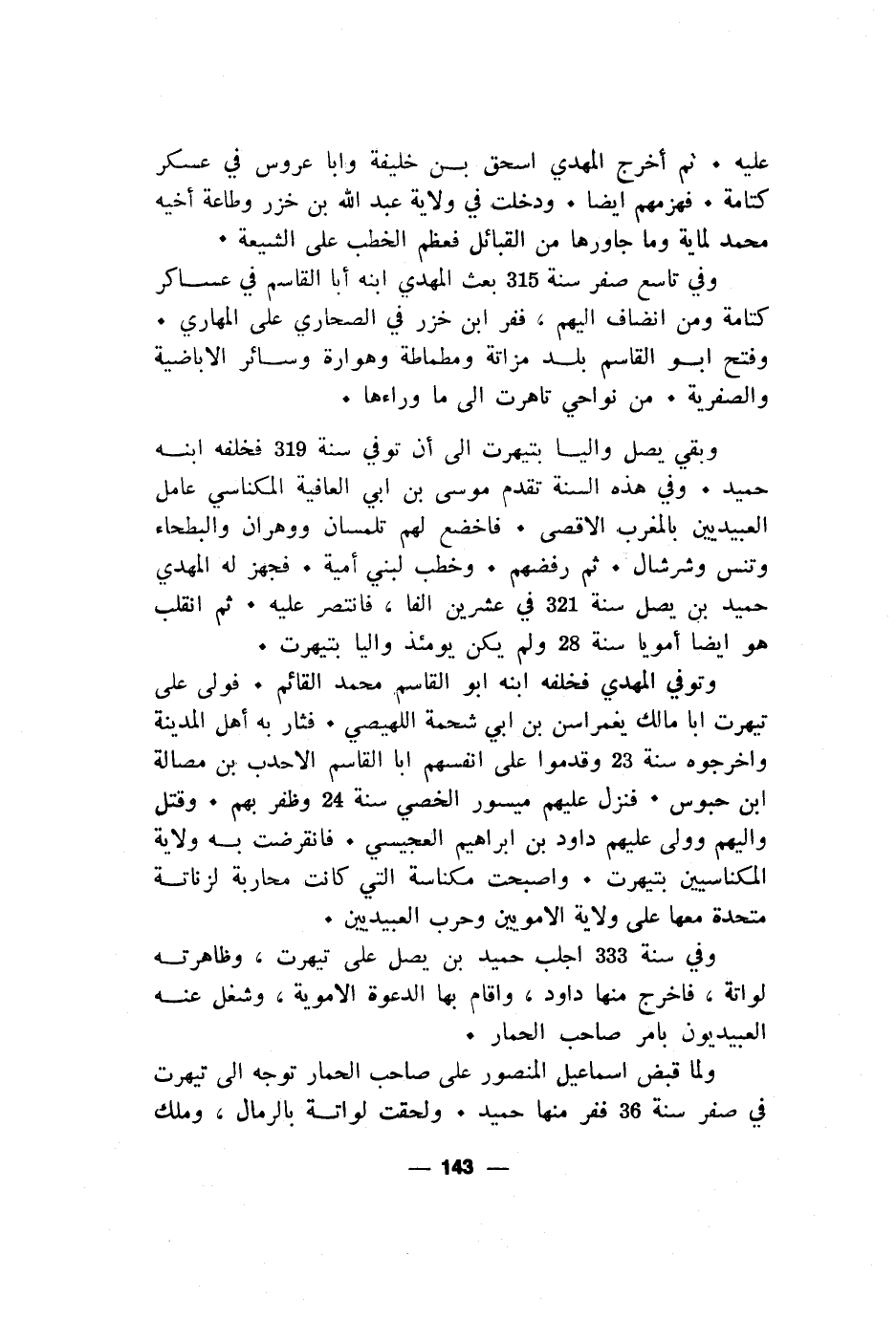 ولما قبض اسماعيل المنصور على صاحب الحمار توجه الى تيهرت في صفر سنة 36 ففر منها حميد. ولحقت لواتة بالرمال، وملك