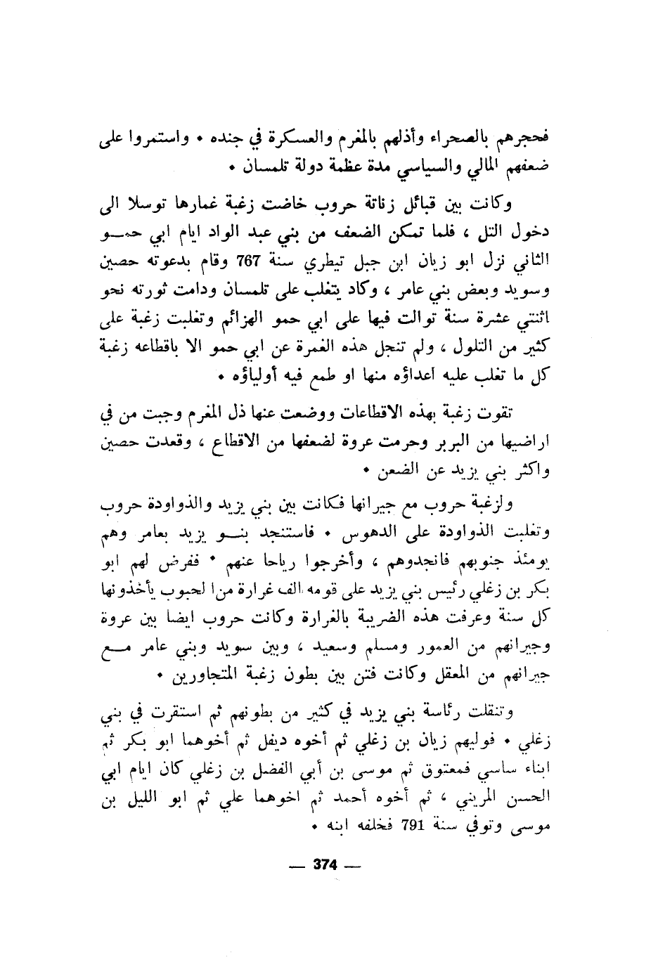 فحجرهم بالصحراء وأذلهم بالمغرم والعساكرة في جنده. واستمروا على ضعفهم المالي والسياسي مدة عظمة دولة تلمسان.