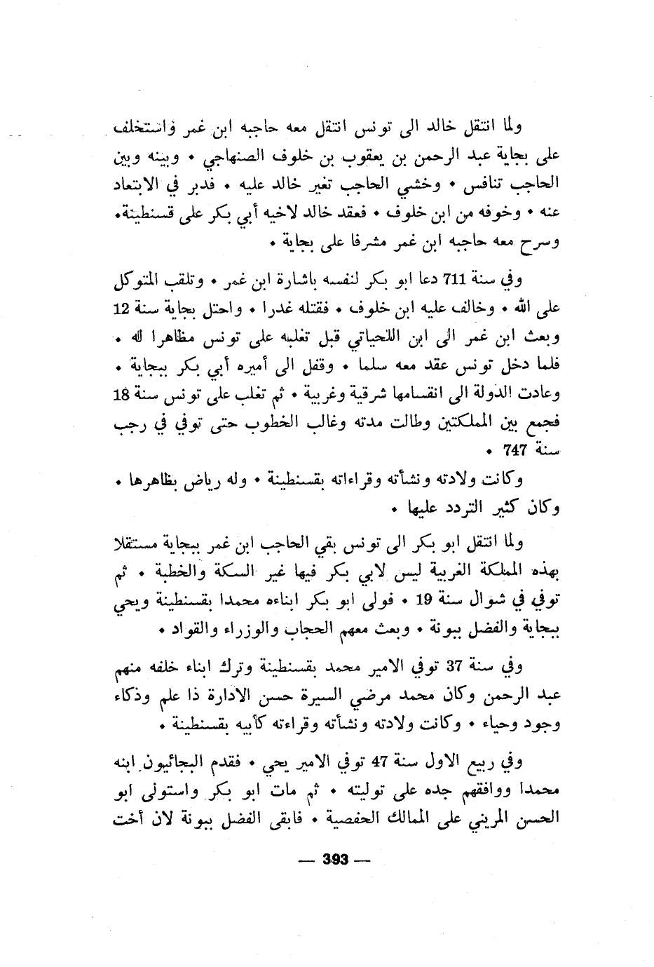 ولما انتقل خالد الى تونس انتقل معه حاجبه ابن غمر واستخلف على بجاية عبد الرحمن بن يعقوب بن خلوفه الصنهاجي. وبينه وبين الحاجب تنافس. وخشي الحاجب تغير خالد عليه. فدبر في الابتعاد عنه. وخوفه من ابن خلوف. فعقد خالد لاخيه أبي بكر على قسنطينة.