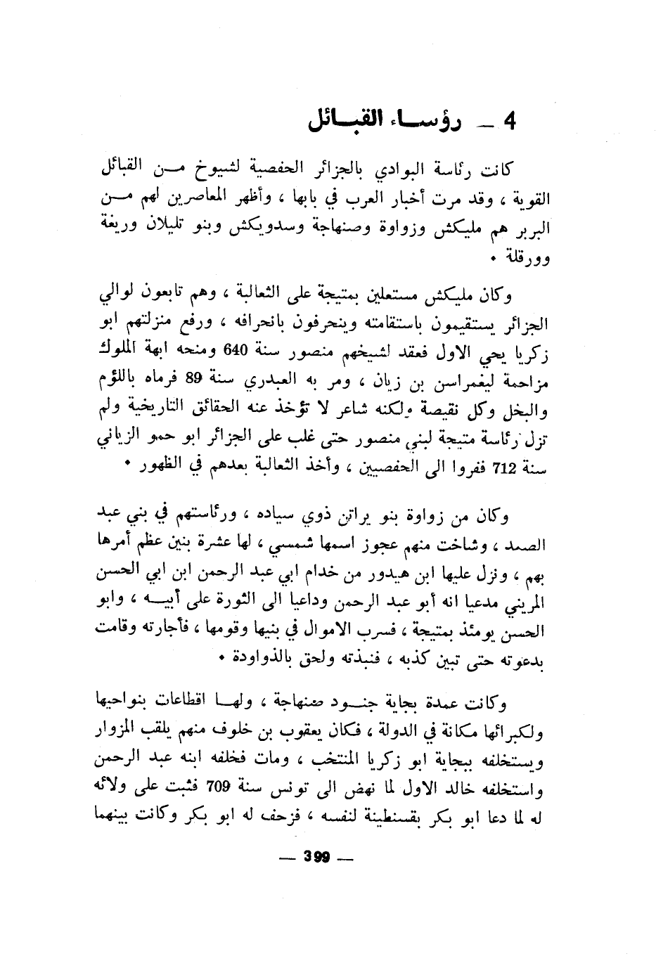 كانت رئاسة البوادي بالجزائر الحفصية لشيوخ من القبائل القوية، وقد مرت أخبار العرب في بابها، وأظهر المعاصرين لهم من البربر هم مليكش وزوارة وصنهاجة وسدويكش وبنو تليلان وريغة وورقلة.