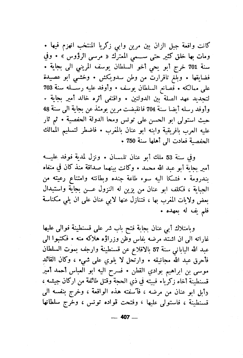 وأوفد رسله أيضا سنة 704 فانقبضت مرين يومئذ عن بجاية الى سنة 48 حيث استولى ابو الحسن على تونس ومحا الدولة الحفصية. ثم ثار عليه العرب بافريقية وابنه ابو عنان بالمغرب. فاضطر لتسليم الممالك الحفصية فعادت الى أهلها سنة 750.