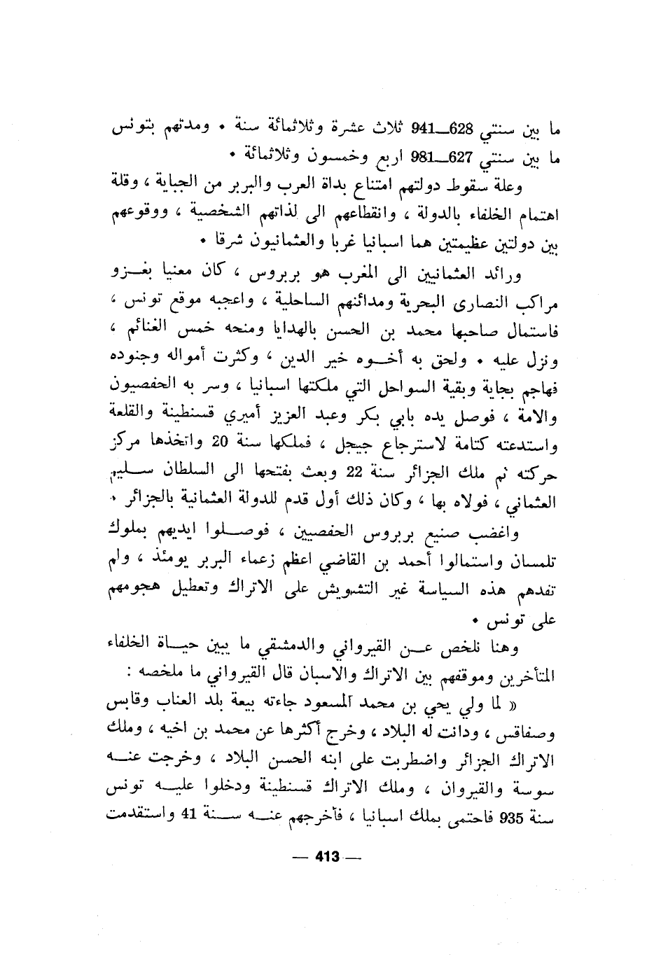 وهنا نلخص عن القيرواني والدمشقي ما بين حياة الخلفاء المتأخرين وموقفهم بين الاتراك والاسبان قال القيرواني ما ملخصه: