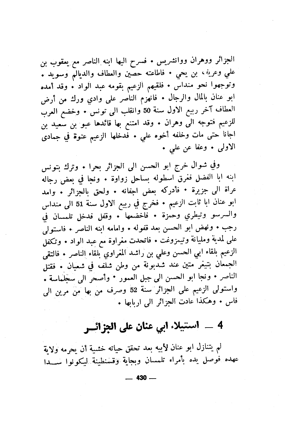 واستولى الزعيم على الجزائر سنة 52 وصرف من بها من مرين الى فاس. وهكذا عادت الجزائر الى اربابها.