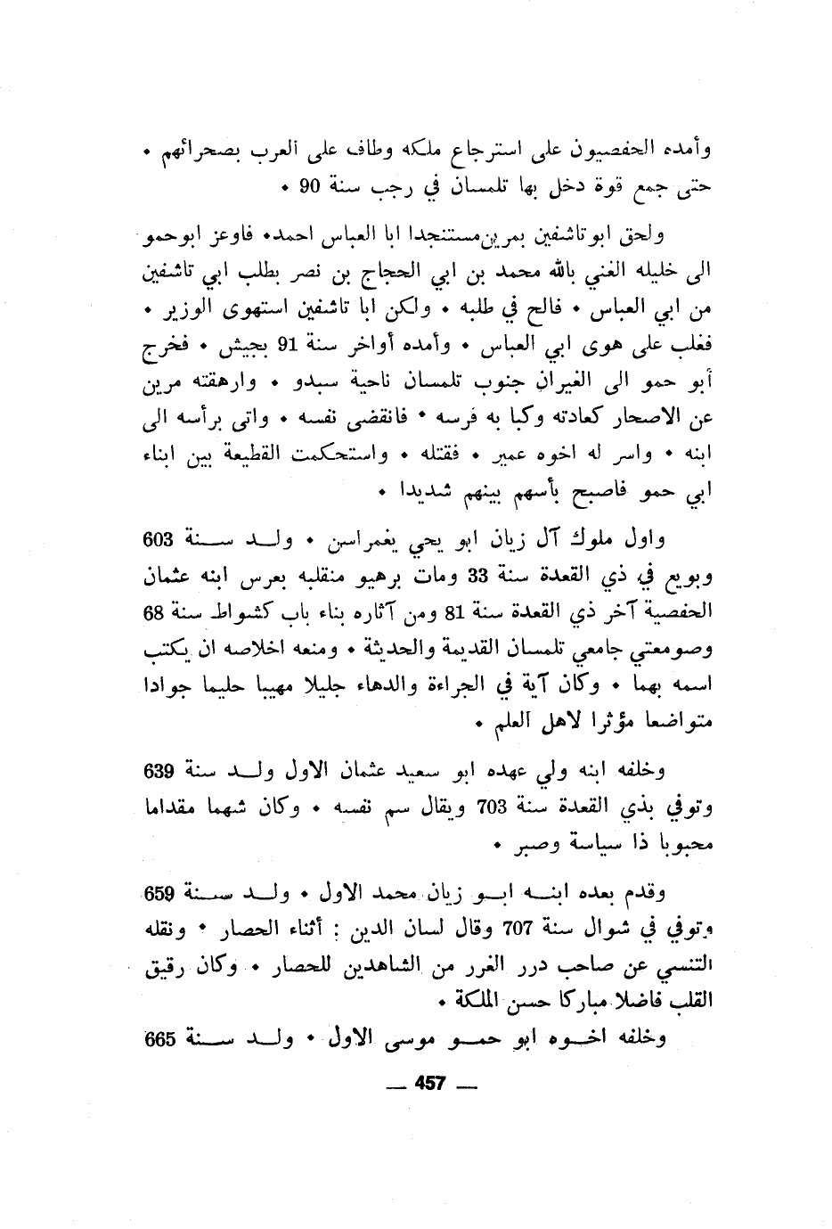 واول ملوك آل زيان ابو يحي يغمراسن. ولد سنة 603 وبويع في ذي القعدة سنة 33 ومات برهيو منقلبه بعرس ابنه عثمان الحفصية آخر ذي القعدة سنة 81 ومن آثاره بناء باب كشواط سنة 68 وصومعتي جامعي تلمسان القديمة والحديثة. ومنعه اخلاصه ان يكتب اسمه بهما. وكان آية في الجراءة والدهاء جليلا مهيبا حليما جوادا متواضعا مؤثرا لاهل العلم.