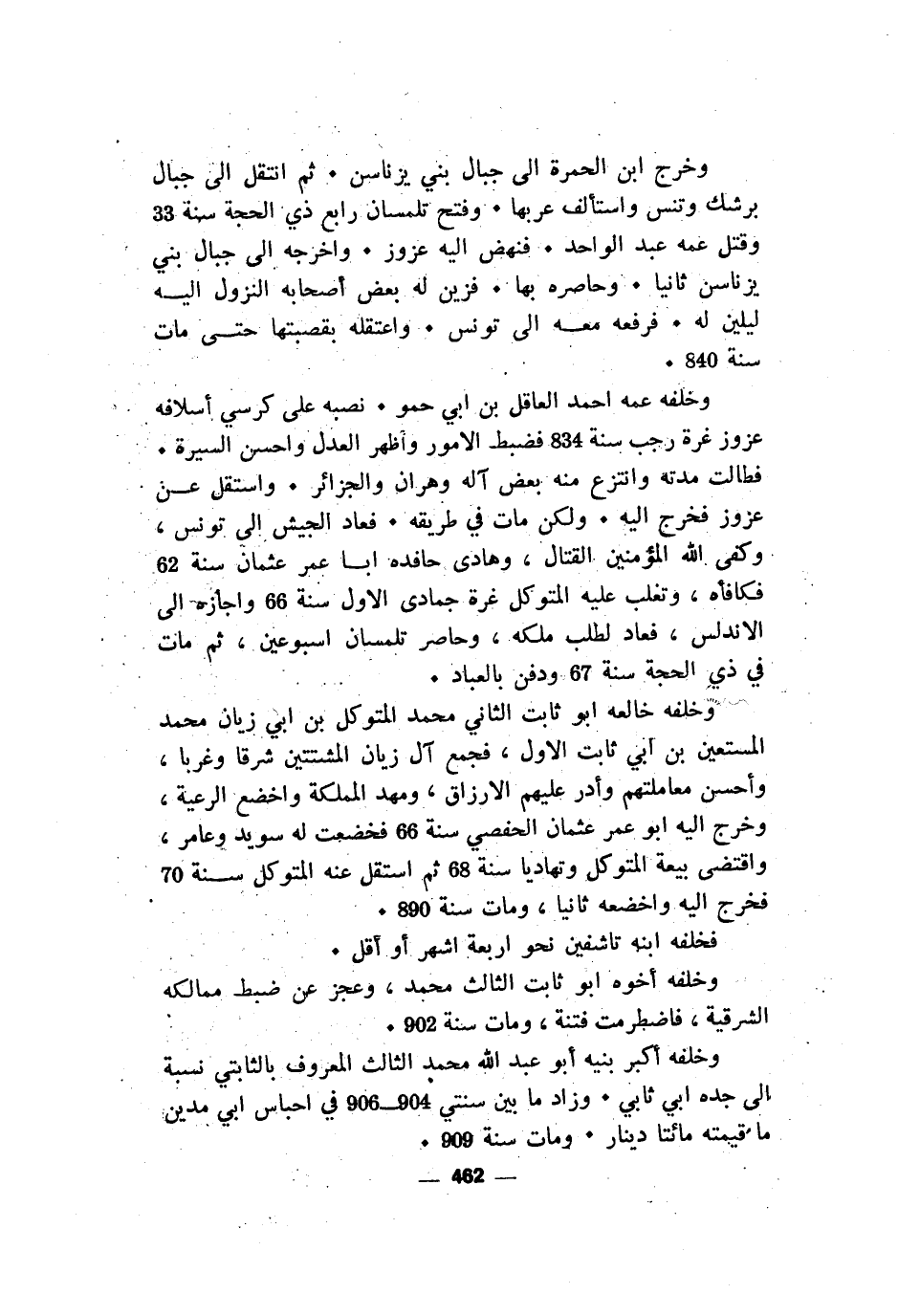 فطالت مدته وانتزع منه بعض آله وهران والجزائر. واستقل عن عزوز فخرج اليه. ولكن مات في طريقه. فعاد الجيش الى تونس، وكفى الله المؤمنين القتال، وهادى حافده ابا عمر عثمان سنة 62 فكافاه، وتغلب عليه المتوكل غرة جمادى الاول سنة 66 واجازه الى الاندلس، فعاد لطلب ملكه، وحاصر تلمسان اسبوعين، ثم مات في ذي الحجة سنة 67 ودفن بالعباد.