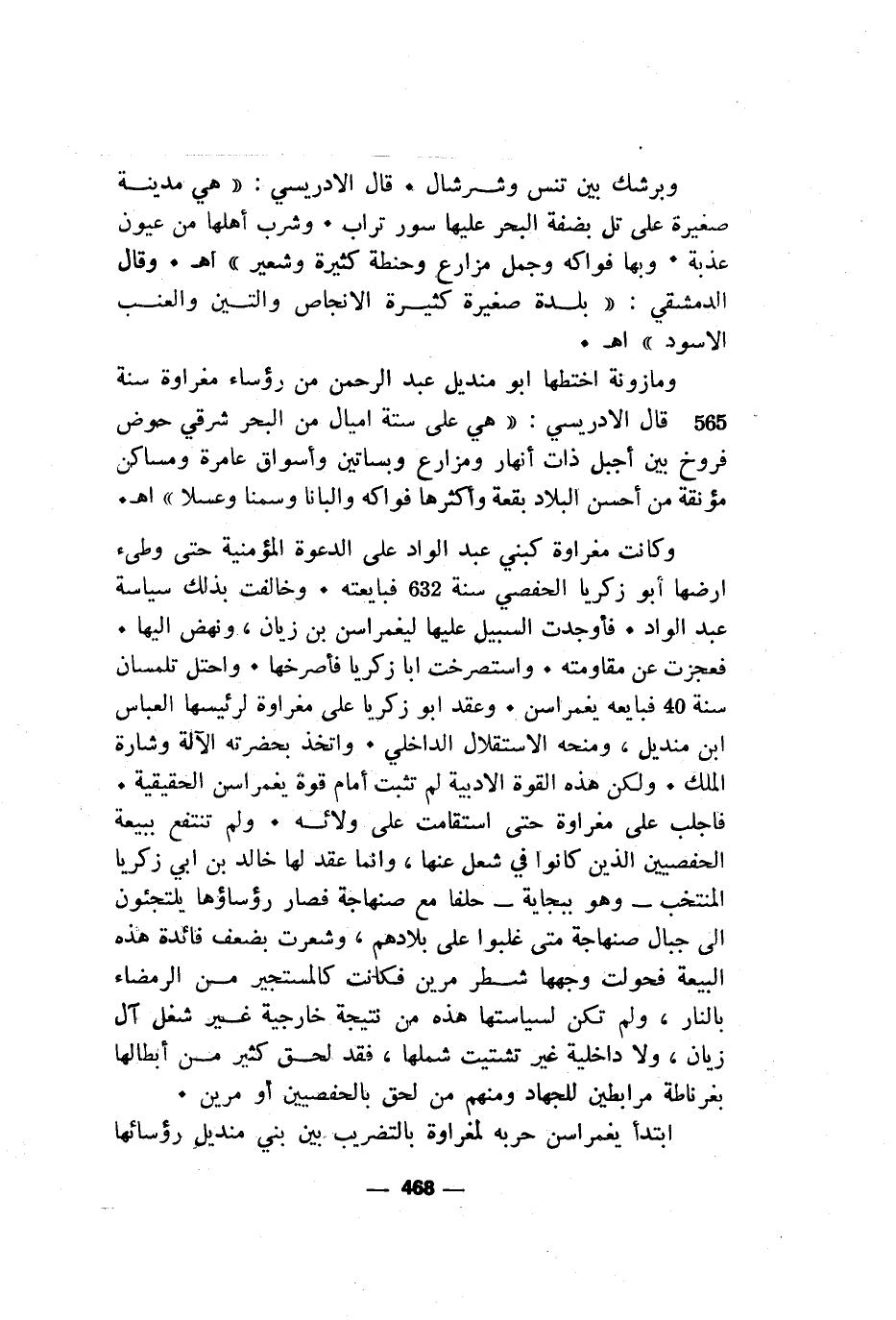 فاجلب على مغراوة حتى استقامت على ولائه. ولم تنتفع ببيعة الحفصيين الذين كانوا في شعل عنها، وانما عقد لها خالد بن ابي زكريا المنتخب- وهو ببجاية- حلفا مع صنهاجة فصار رؤساؤها يلتجئون الى جبال صنهاجة متى غلبوا على بلادهم، وشعرت بضعف فائدة هذه البيعة فحولت وجهها شطر مرين فكانت كالمستجير من الرمضاء بالنار، ولم تكن لسياستها هذه من نتيجة خارجية غير شغل آل زيان، ولا داخلية ىبر تشتيت شملها، فقد لحق كثير من أبطالها بغرناطة مرابطين للجهاد ومنهم من لحق بالحفصيين أو مرين.