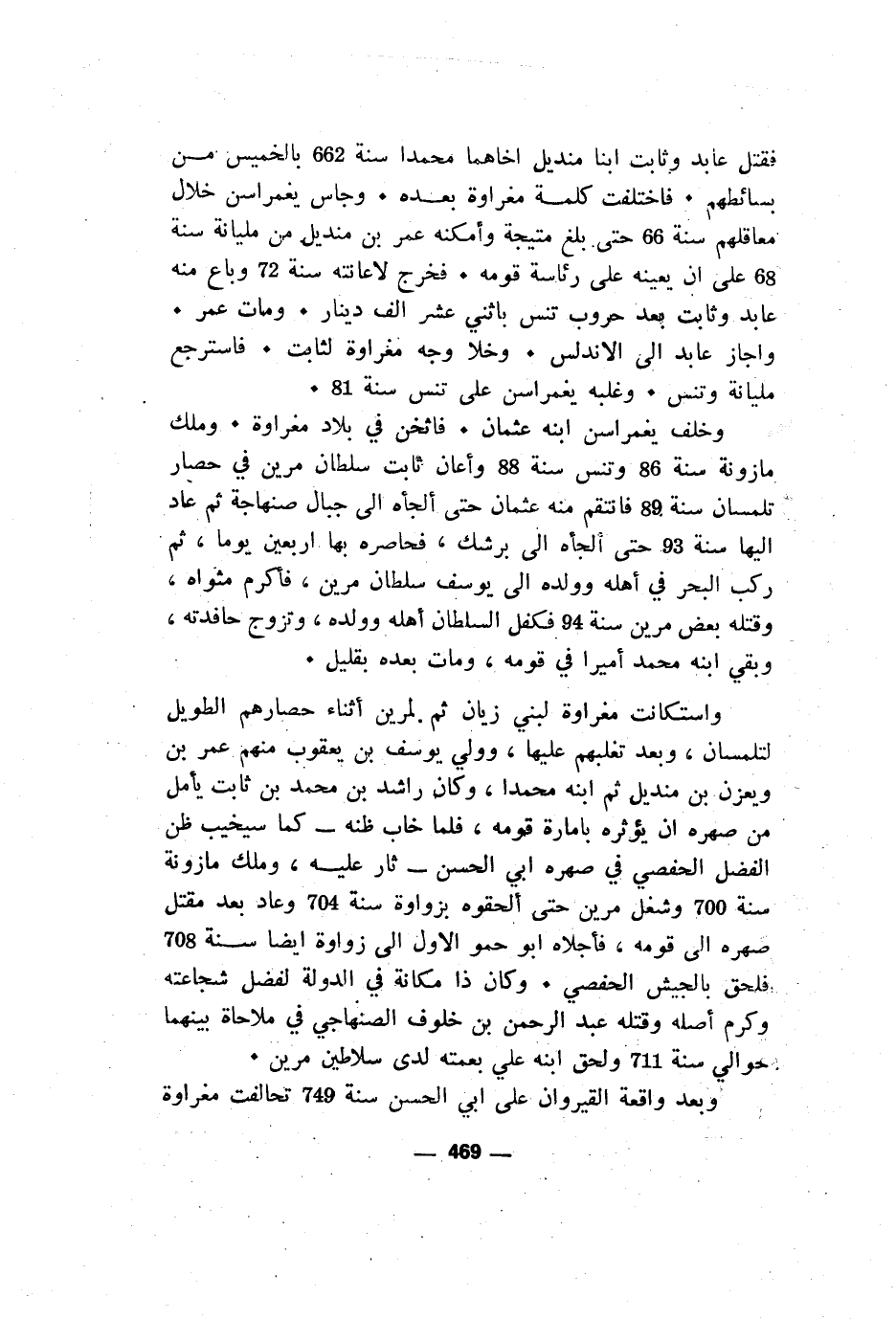واجاز عابد الى الاندلس. وخلا وجه مغراوة لثابت. فاسترجع مليانة وتنس. وغلبه يغمراسن على تنس سنة 81.