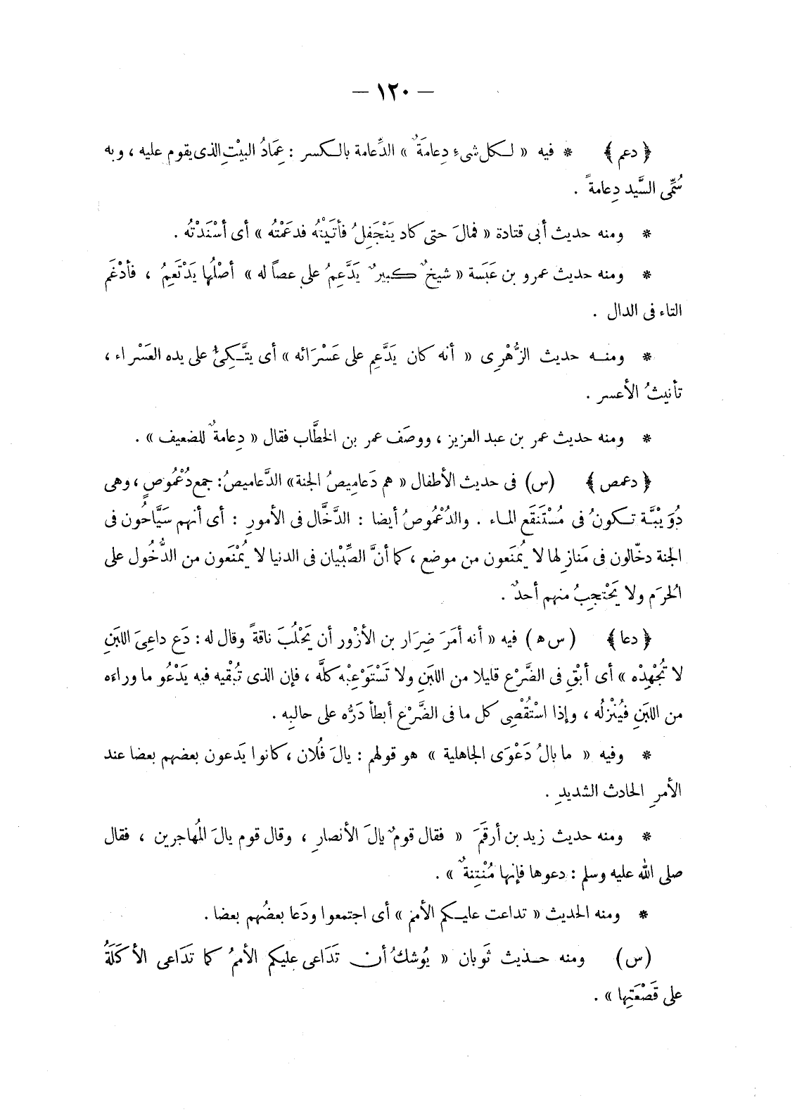 وَمِنْهُ حَدِيثُ عُمَرَ بْنِ عَبْدِ الْعَزِيزِ، ووصَف عُمَرَ بْنَ الخطَّاب فَقَالَ «دِعَامَةٌ لِلضَّعِيفِ» .