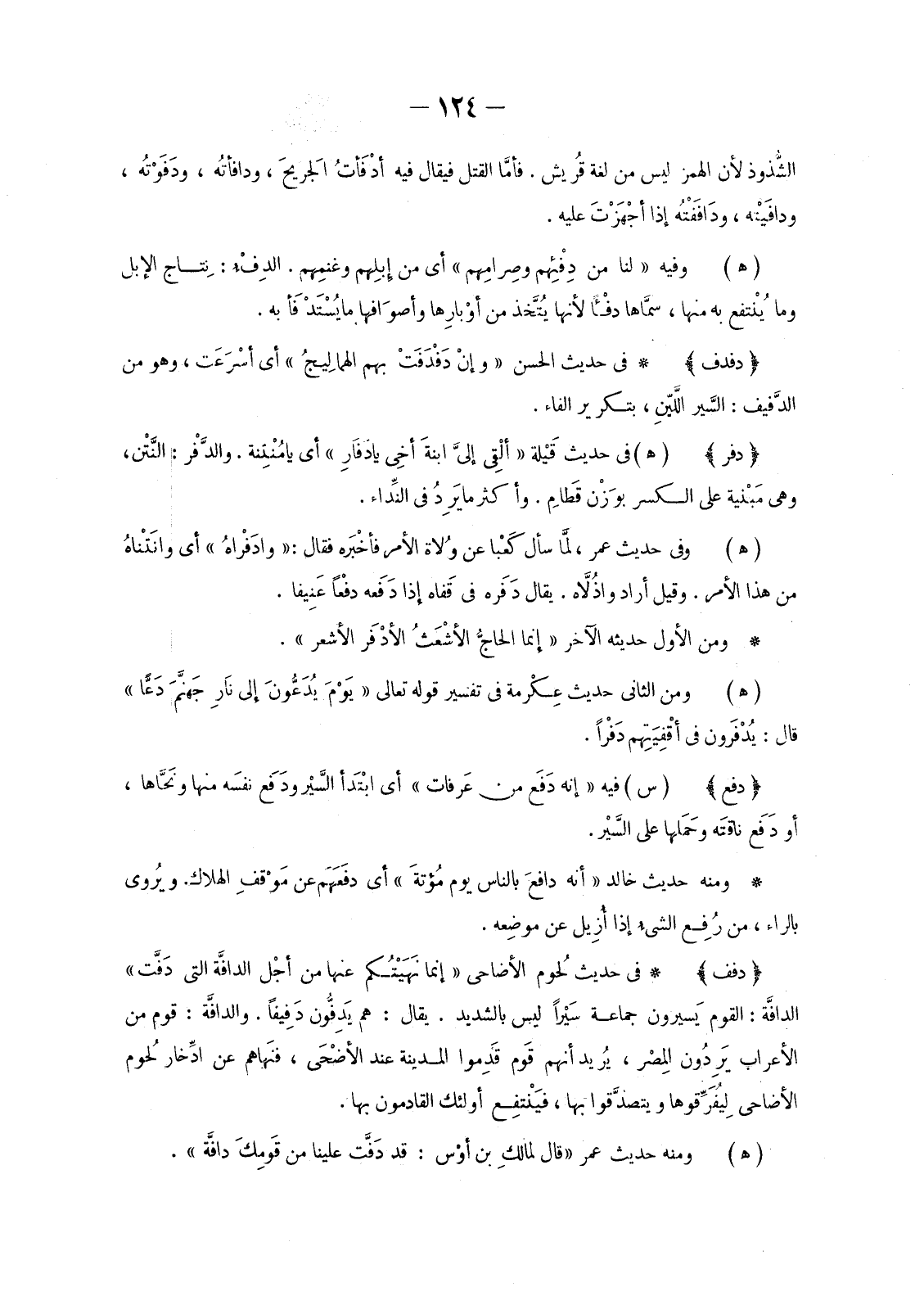 الشُّذوذ لِأَنَّ الْهَمْزَ لَيْسَ مِنْ لُغَةِ قُريش. فأمَّا الْقَتْلُ فَيُقَالُ فِيهِ أَدْفَأْتُ الجَريحَ، ودَافَأْتُهُ، ودَفَوْتُه، ودافَيْته، ودَافَفْتُه إِذَا أجْهَزْتَ عَلَيْهِ.