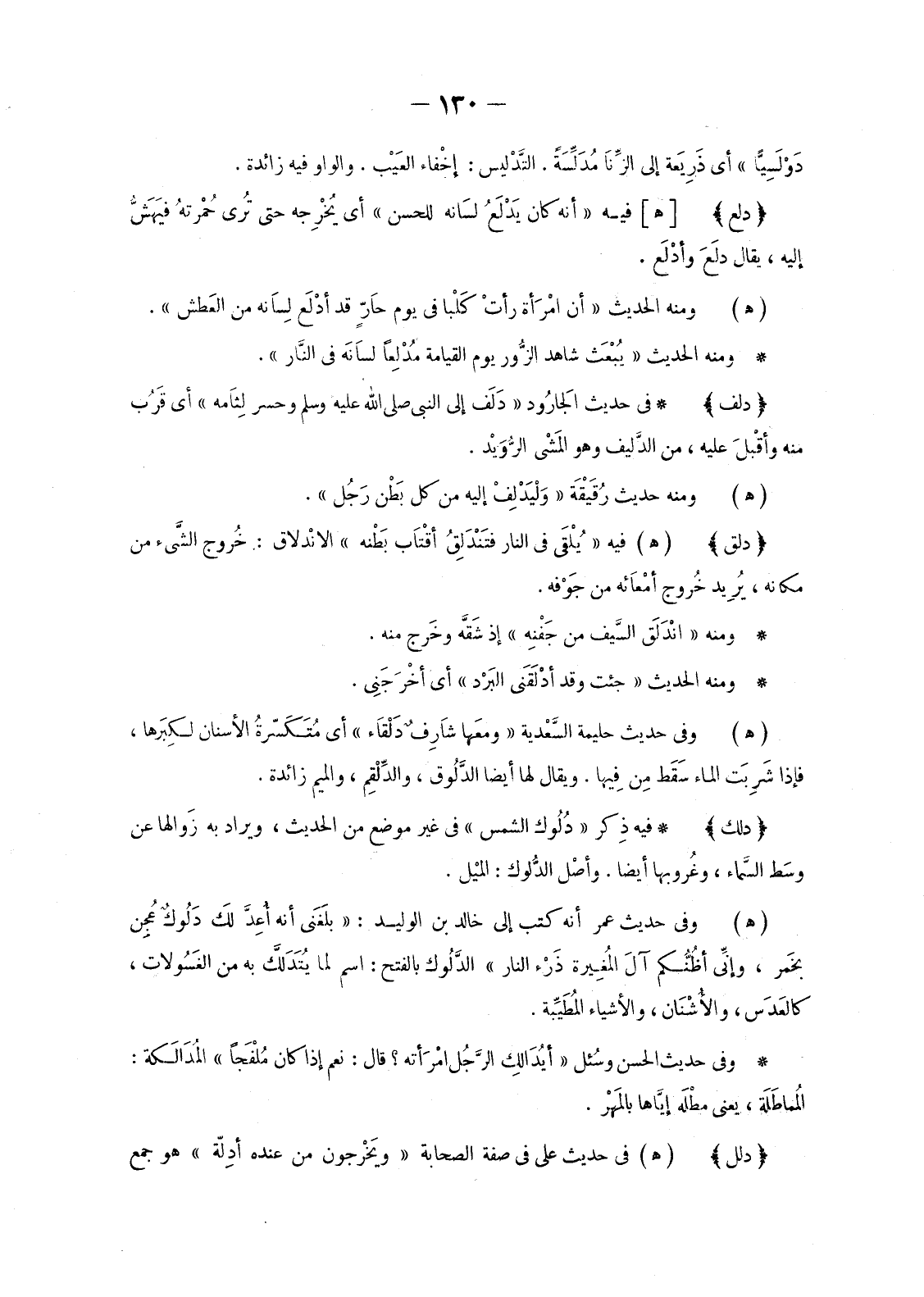 فِيهِ ذِكر «دُلُوك الشَّمْسِ» فِي غَيْرِ مَوْضِعٍ مِنَ الْحَدِيثِ، وَيُرَادُ بِهِ زَوالها عَنْ وسَط السَّماء، وغُروبها أَيْضًا. وأصْل الدُّلُوكِ: الميْل.