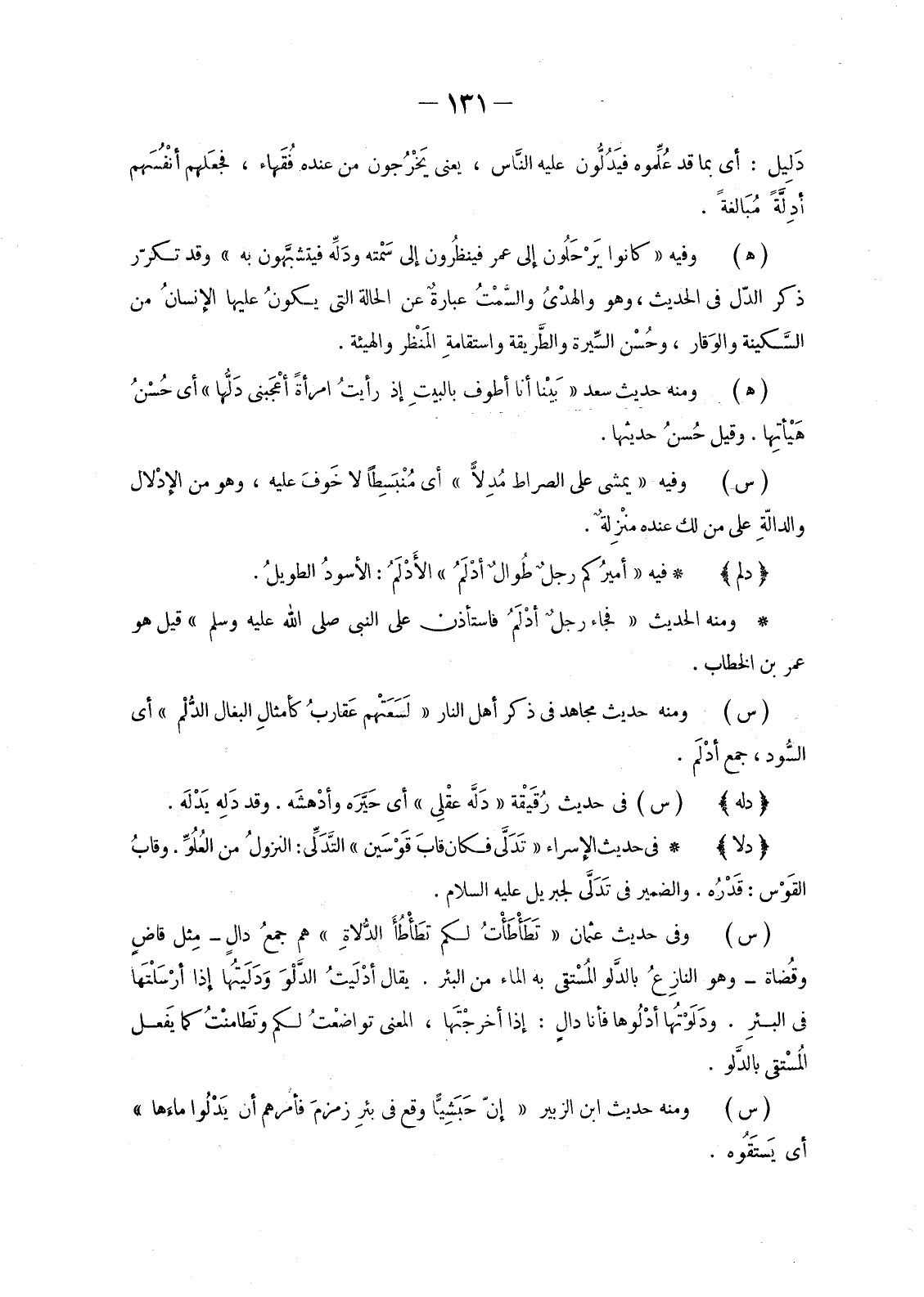 (هـ) وَفِيهِ «كَانُوا يَرْحَلُون إِلَى عُمَرَ فينظُرون إِلَى سَمْته ودَلِّهِ فَيَتَشَبَّهُونَ بِهِ» وَقَدْ تَكَرَّرَ ذِكْرُ الدَّلِّ فِي الْحَدِيثِ، وَهُوَ والهدْيٌ والسَّمْتُ عبارةٌ عَنِ الْحَالَةِ الَّتِي يكونُ عَلَيْهَا الإنسانُ مِنَ السَّكينة والوَقار، وحُسْن السِّيرة والطَّريقة واستقامةِ المَنْظر وَالْهَيْئَةِ.