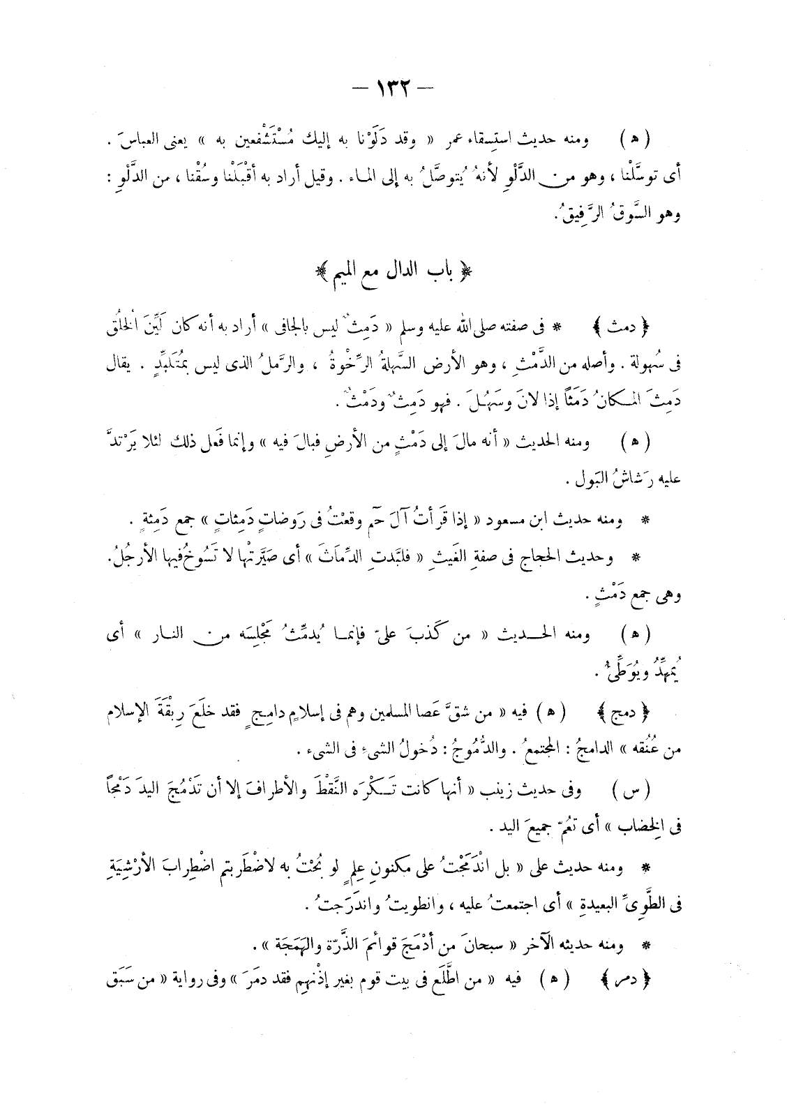 (هـ) فِيهِ «مَنْ شقَّ عَصا الْمُسْلِمِينَ وَهُمْ فِي إسلامٍ دَامِجٍ فَقَدْ خلَعَ رِبْقَةَ الْإِسْلَامِ مِنْ عُنُقه» الدَّامِجُ: المجتمعُ. والدُّمُوجُ: دُخولُ الشيءِ فِي الشَّيْءِ.