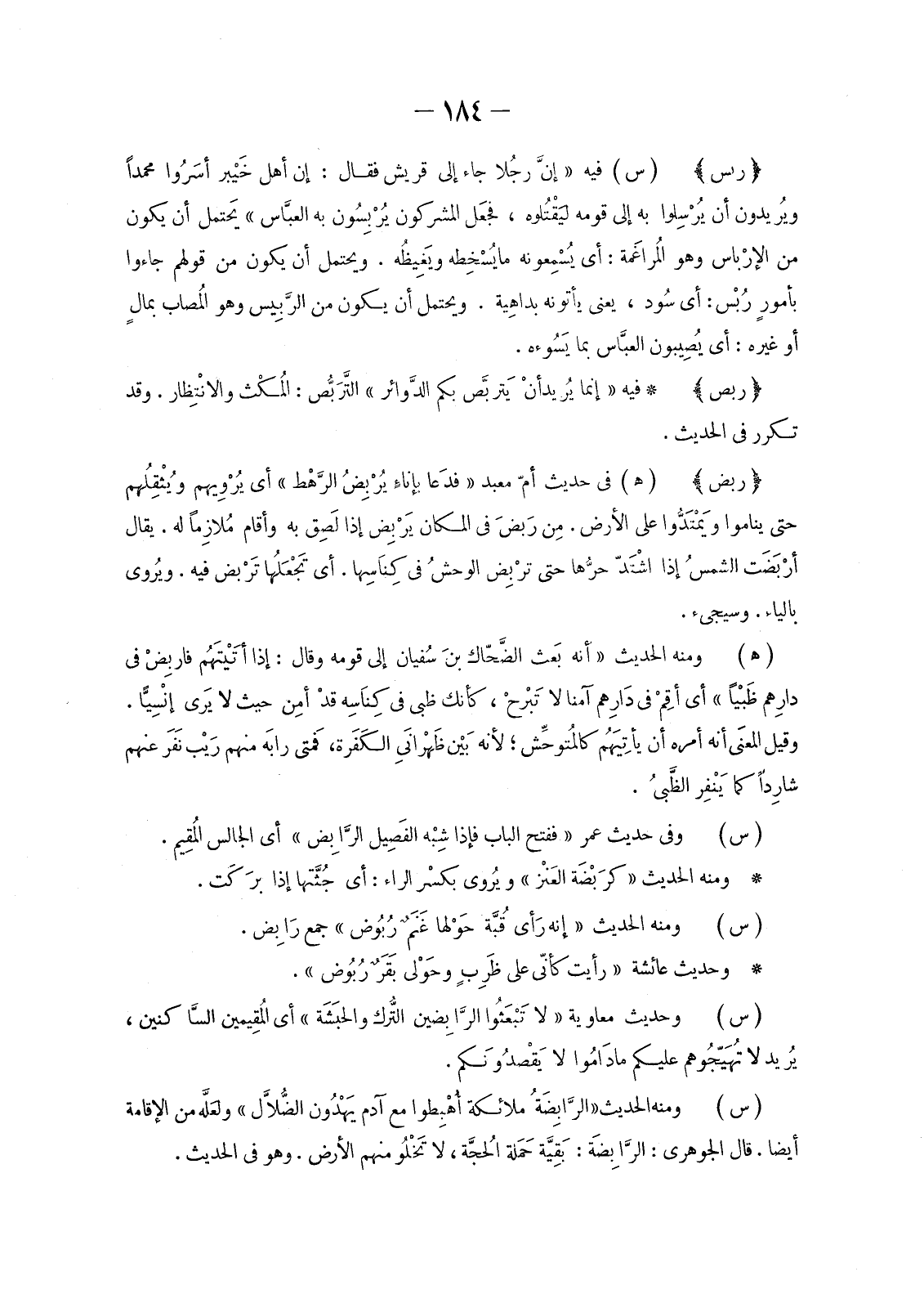 (س) فِيهِ «إنَّ رجُلا جَاءَ إِلَى قُرَيْشٍ فَقَالَ: إِنَّ أَهْلَ خَيْبر أسَرُوا مُحَمَّدًا وَيُرِيدُونَ أَنْ يُرْسِلُوا بِهِ إِلَى قَوْمِهِ لِيَقْتُلُوهُ، فجعَل الْمُشْرِكُونَ يُرْبِسُونَ بِهِ العبَّاس» يَحتمل أَنْ يَكُونَ مِنَ الْإِرْبَاسِ وَهُوَ المُراغَمة: أَيْ يُسْمِعونه مَا يُسْخِطه ويَغِيظُه. وَيُحْتَمَلُ أَنْ يَكُونَ مِنْ قَوْلِهِمْ جَاءُوا بأمورٍ رُبْسٍ: أَيْ سُود، يَعْنِي يَأْتُونَهُ بداهِية. وَيُحْتَمَلُ أَنْ يَكُونَ مِنَ الرَّبِيسِ وَهُوَ المُصاب بمالٍ أَوْ غَيْرِهِ: أَيْ يُصِيبون العبَّاس بِمَا يَسُوءه.