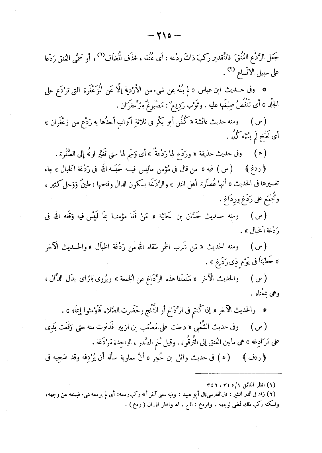 (2) زاد في الدر النثير: قال الفارسي قال ابو عبيد: وفيه معنى آخر أنه ركب ردعه: أي لم يردعه شيء فيمنعه عن وجهه، ولكنه ركب ذلك فمضى لوجهه. والردع: المنع. اه وانظر اللسان (ردع) .