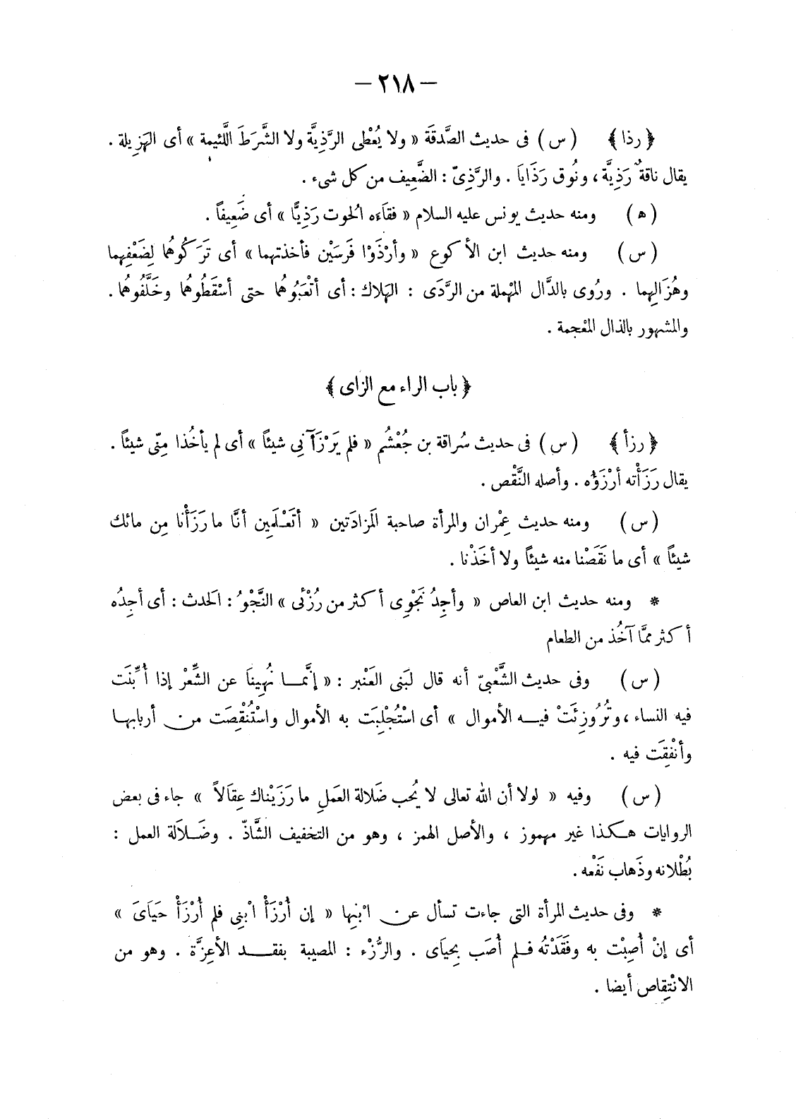 بَابُ الرَّاءِ مَعَ الزَّايِ