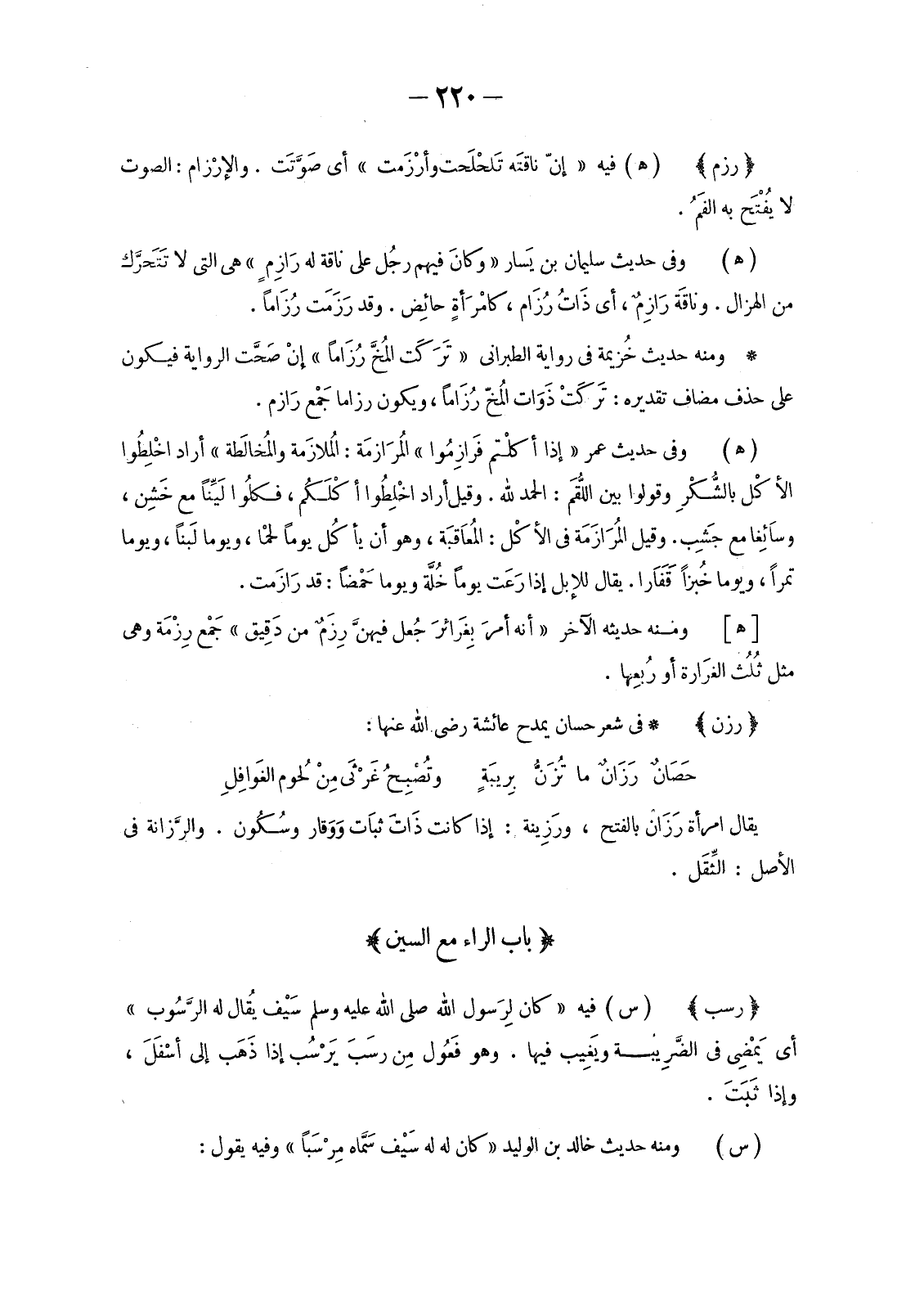 (هـ) فِيهِ «إِنَّ ناقَته تَلحْلَحت وأَرْزَمَتْ» أَيْ صَوَّتَت. والْإِرْزَامُ: الصَّوْتُ لَا يُفْتَح بِهِ الفَمُ.