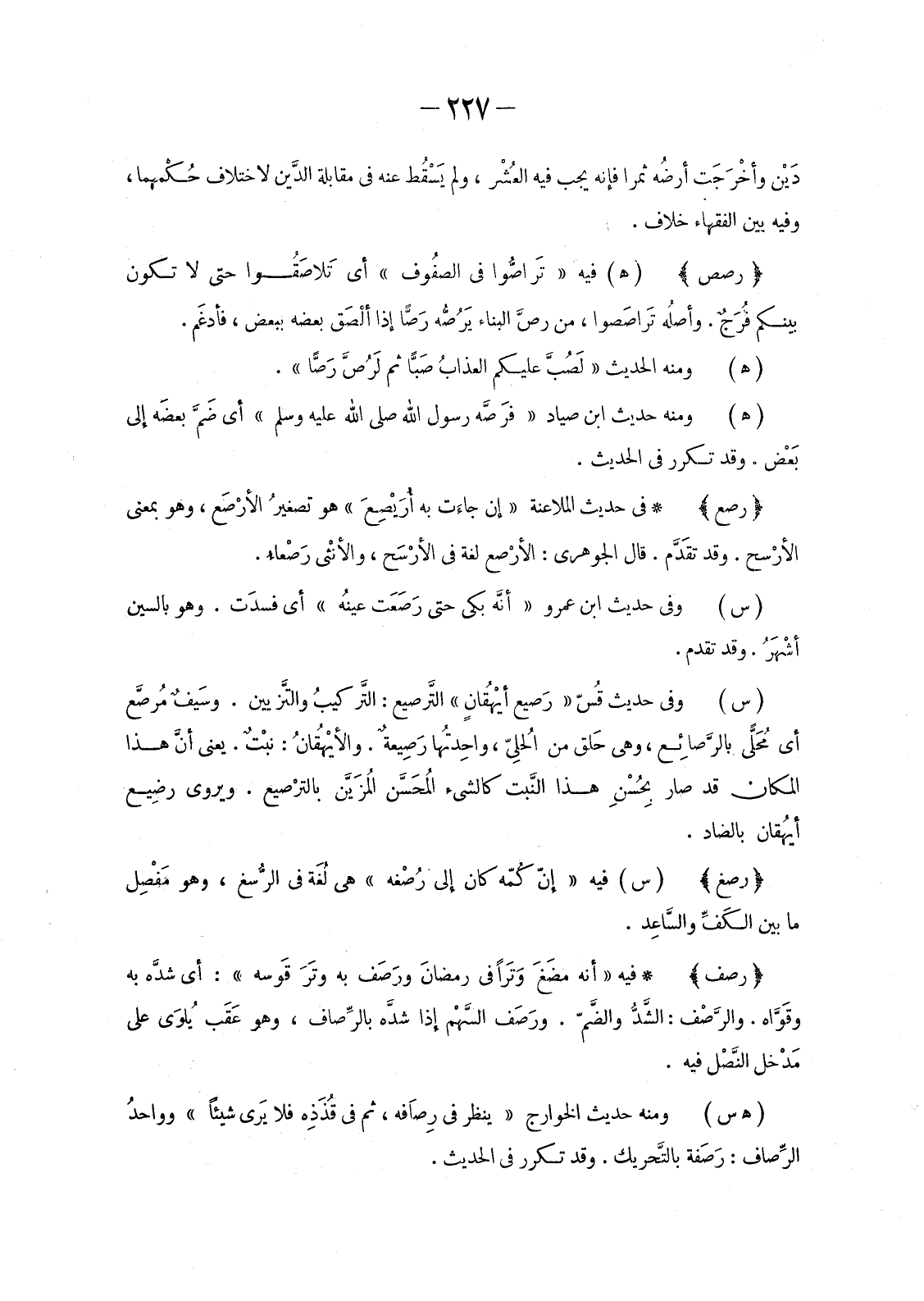 (هـ) فِيهِ «تَرَاصُّوا فِي الصفُوف» أَيْ تَلاصَقُوا حَتَّى لَا تَكُونَ بَيْنَكُمْ فُرَجٌ. وأصلُه تَراصَصوا، مِنْ رَصَّ الْبِنَاءَ يَرُصُّهُ رَصّاً إِذَا ألْصَق بَعْضَهُ بِبَعْضٍ، فأدغَم.