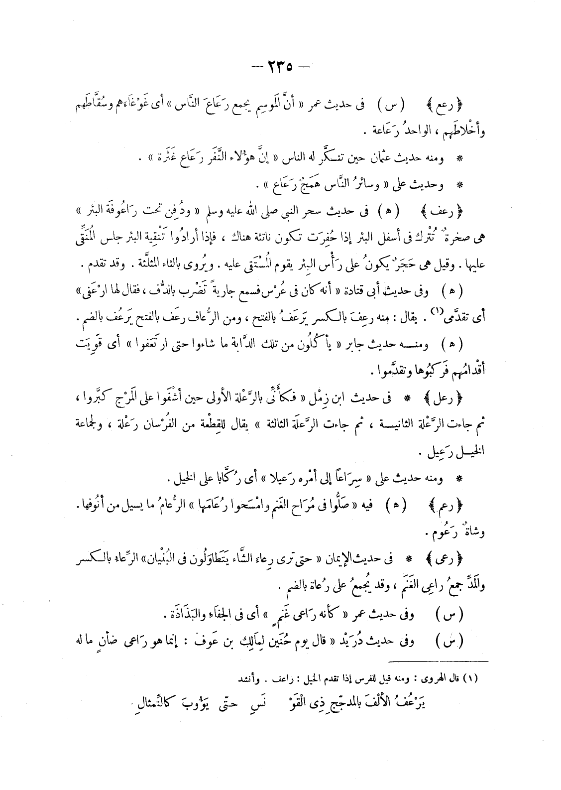 (1) قال الهروي: ومنه قيل للفرس إذا تقدم الخيل: راعف. وأنشد
