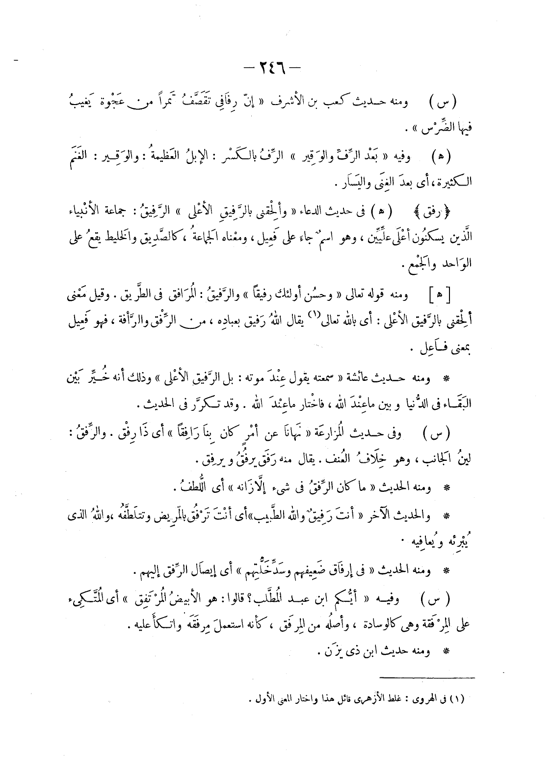 (هـ) فِي حَدِيثِ الدُّعَاءِ «وألْحِقني بالرَّفِيق الأعْلى» الرَّفِيقُ: جَمَاعَةُ الأنْبياء الذَّين يسكنُون أعْلَى علِّيِّين، وَهُوَ اسمٌ جَاءَ عَلَى فَعِيل، ومعْناه الجَماعةُ، كالصَّدِيق والخَليط يقعُ عَلَى الوَاحد والجَمْع.