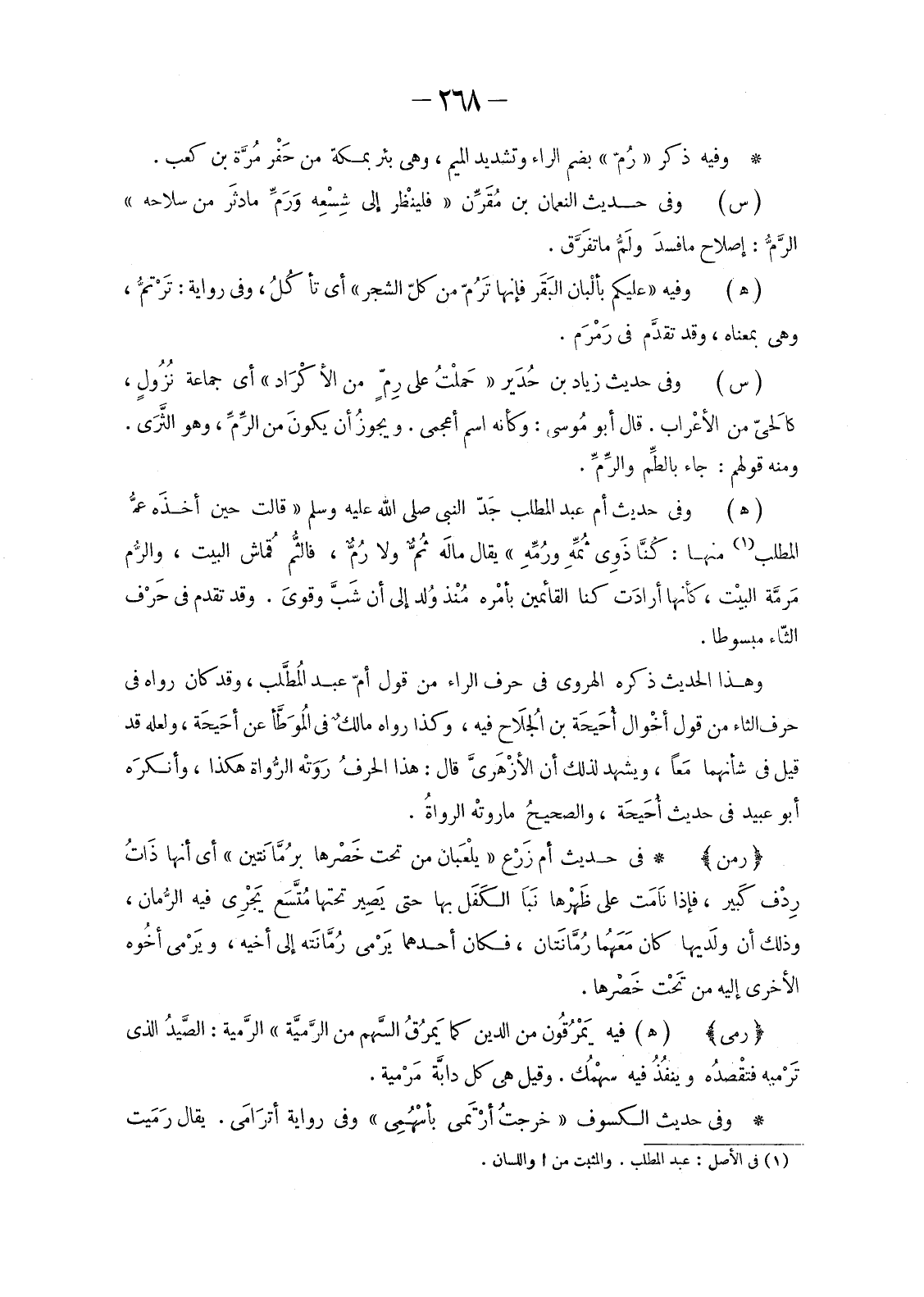 وَفِيهِ ذِكْرُ «رُمّ» بِضَمِّ الرَّاءِ وَتَشْدِيدِ الْمِيمِ، وَهِيَ بِئْرٌ بِمَكَّةَ مِنْ حَفْر مُرَّة بْنِ كَعْبٍ.