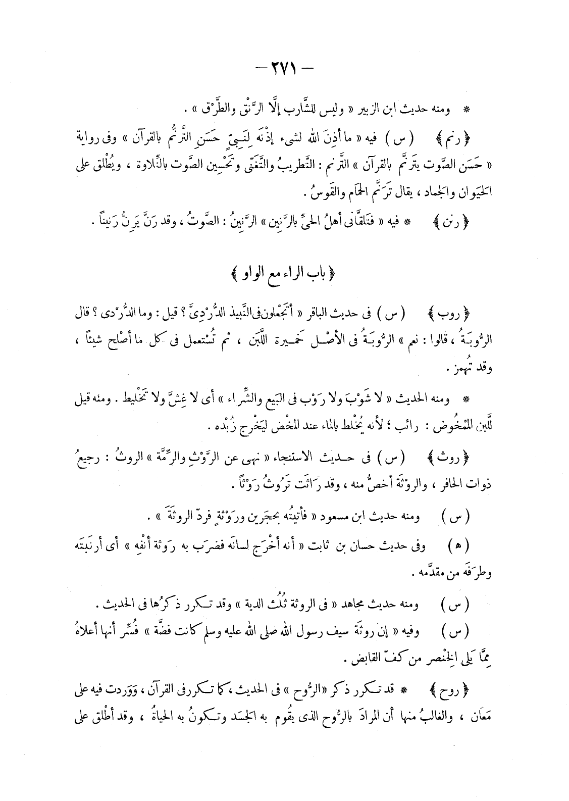 قَدْ تَكَرَّرَ ذِكْرُ «الرُّوحِ» فِي الْحَدِيثِ، كَمَا تَكَرَّرَ فِي الْقُرْآنِ، وَوَردت فِيهِ عَلَى مَعَان، والغالبُ مِنْهَا أَنَّ المرادَ بِالرُّوحِ الَّذِي يقُوم بِهِ الجَسَد وتكونُ بِهِ الحياةُ، وَقَدْ أطلقْ عَلَى