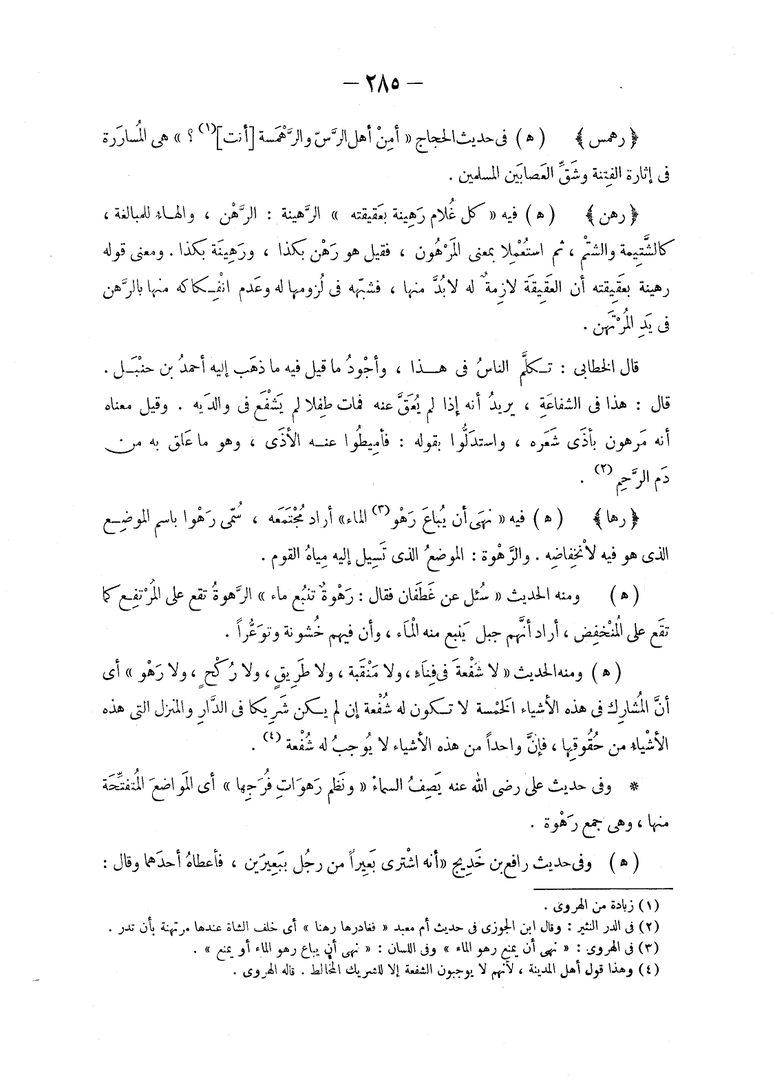 (3) في الهروي: «نهى أن يمنع رهو الماء» وفي اللسان: «نهى أن يباع رهو الماء أو يمنع» .