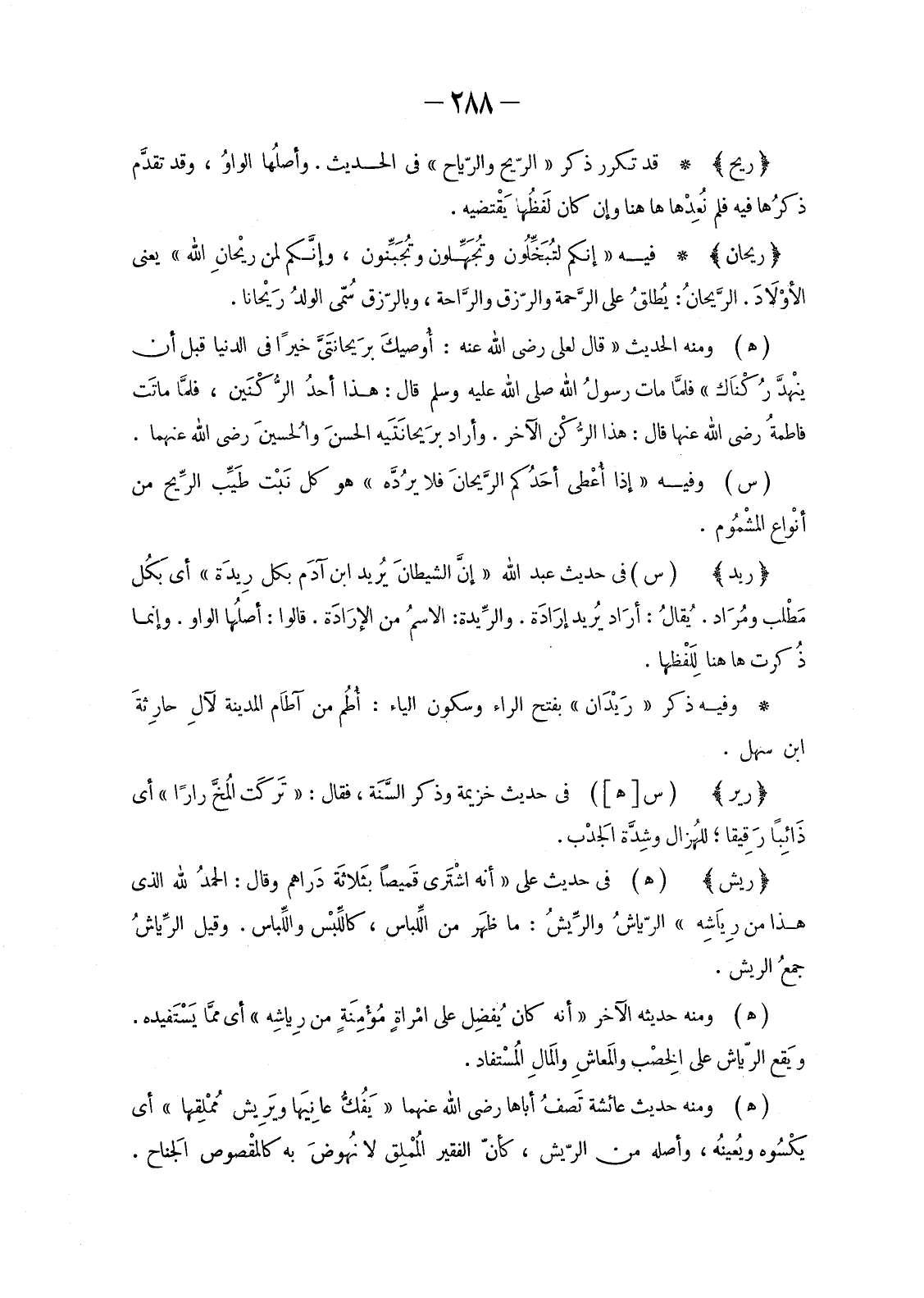 قَدْ تَكَرَّرَ ذِكْرُ «الرِّيحِ والرِّيَاحِ» فِي الْحَدِيثِ. وأصلُها الواوُ، وَقَدْ تقدَّم ذكرُها فِيهِ فَلَمْ نُعِدْهَا هَاهُنَا وَإِنْ كَانَ لفَظُها يَقْتضيه.