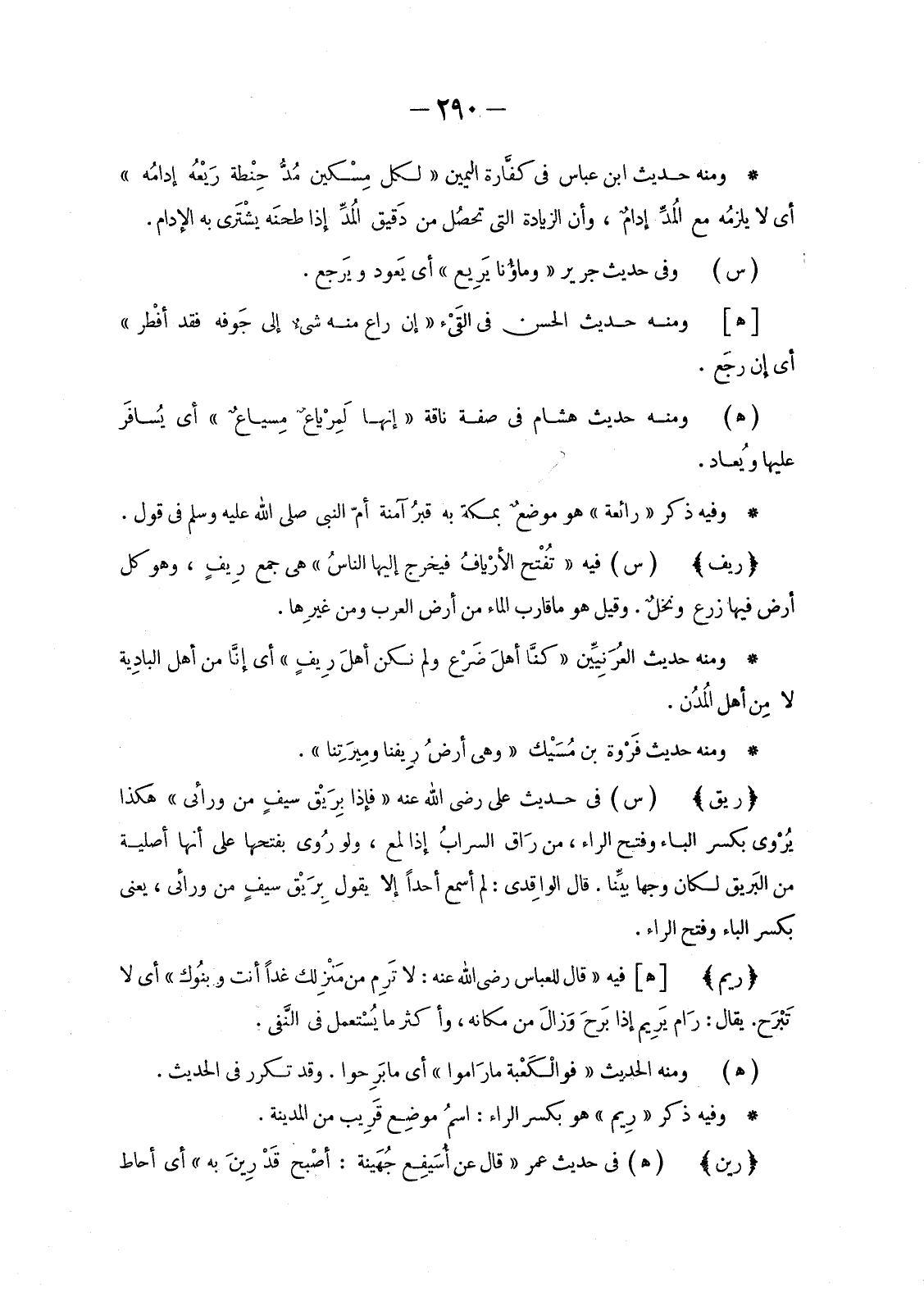 وَمِنْهُ حَدِيثُ العُرَنِيِّين «كنَّا أهلَ ضَرْع وَلَمْ نَكُنْ أهلَ رِيفٍ» أَيْ إنَّا مِنْ أَهْلِ البادِية لَا مِن أَهْلِ المُدُن.