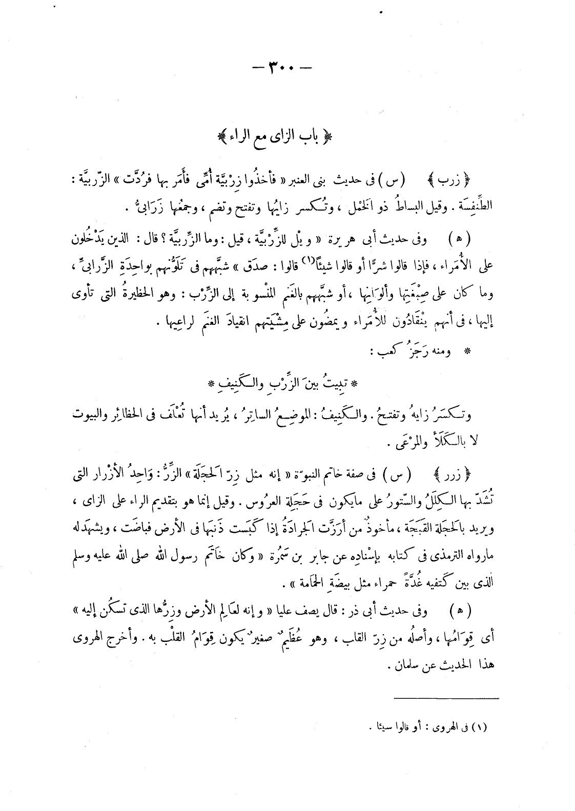 بَابُ الزَّايِ مَعَ الرَّاءِ