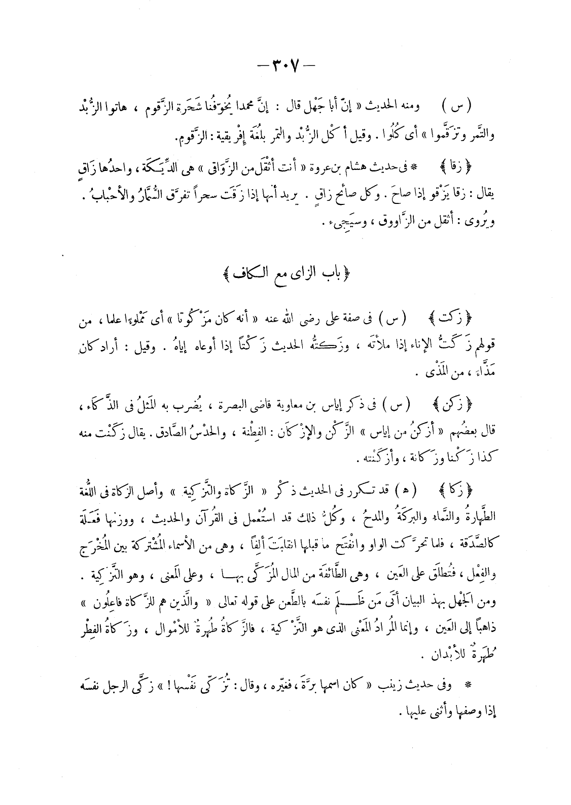 بَابُ الزَّايِ مَعَ الْكَافِ
