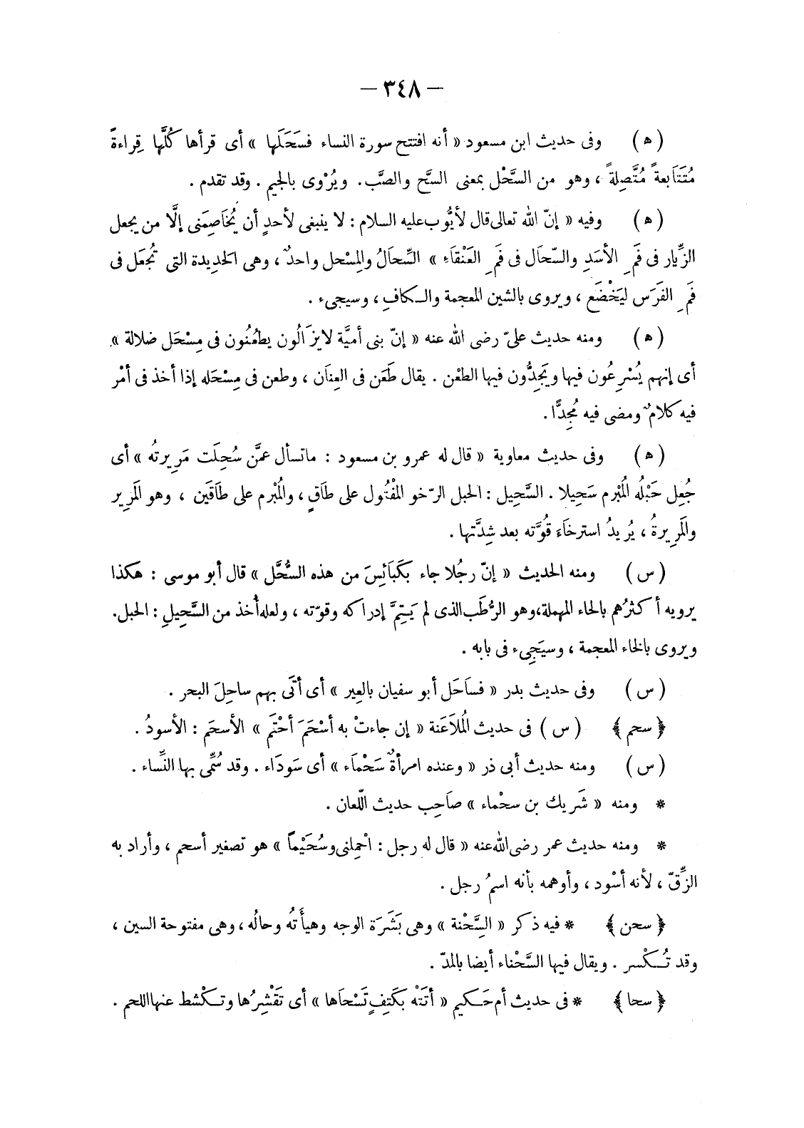 فيه ذكر «السَّحْنَة السِّحْنَة» وهي بَشَرَة الوجه وهيأَتُه وحالُه، وَهِيَ مَفْتُوحَةُ السِّينِ، وَقَدْ تُكْسر. وَيُقَالُ فِيهَا السَّحْنَاءُ أَيْضًا بِالْمَدِّ.