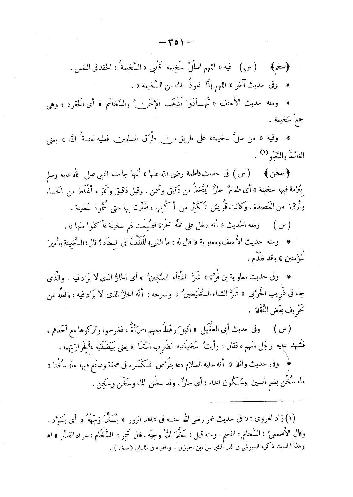 (1) زاد الهروي: «فِي حَدِيثِ عُمَرَ رَضِيَ اللَّهُ عَنْهُ فِي شاهد الزور «يُسَخَّمُ وَجْهُهُ» أي يُسَوَّد. وقال الأصمعيّ: السُّخام: الفحم. ومنه قيل: سَخَّمَ اللهُ وجهه. قال شمر: السّخام: سواد القدر» اه وهذا الحديث ذكره السيوطي في الدر النثير عن ابن الجوزي. وانظره في اللسان (سخم) .