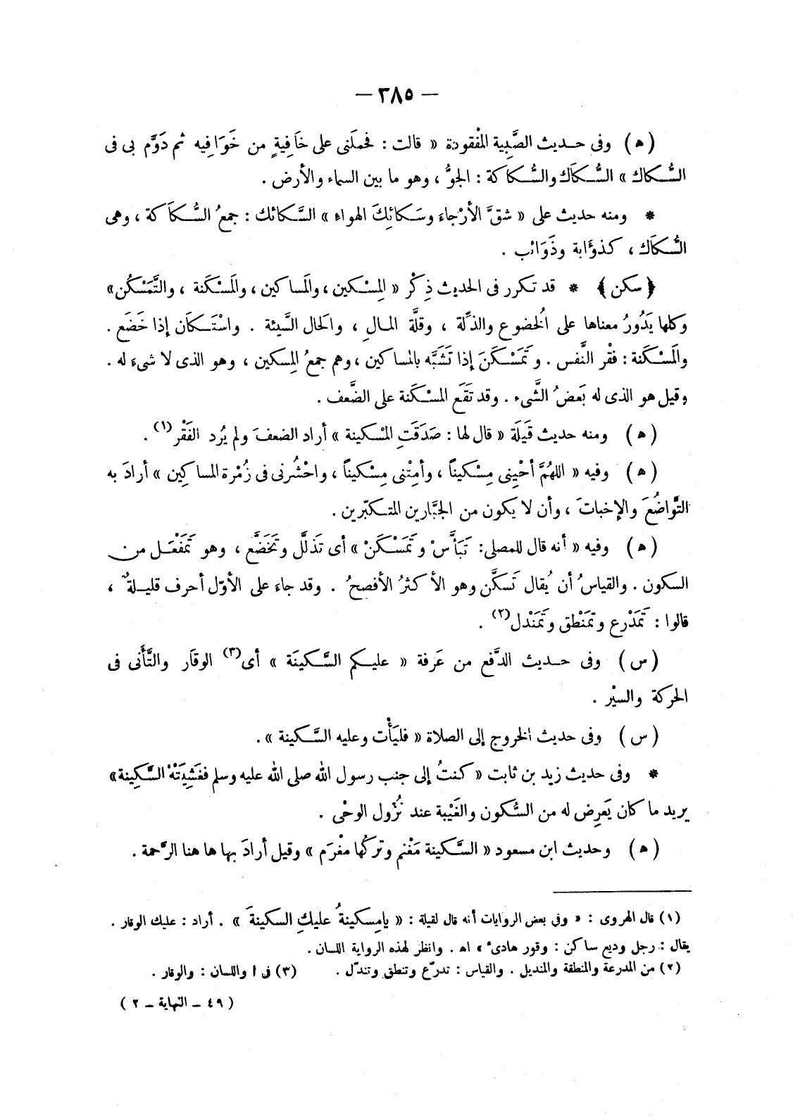 (1) قال الهروي: «وفي بعض الروايات أنه قال لقيلة: «يا مِسْكِينَةُ عليكِ السَّكِينَةَ» . أراد: عليك الوقار. يقال: رجل وديع ساكن: وقور هادئ» اه. وانظر لهذه الرواية اللسان.