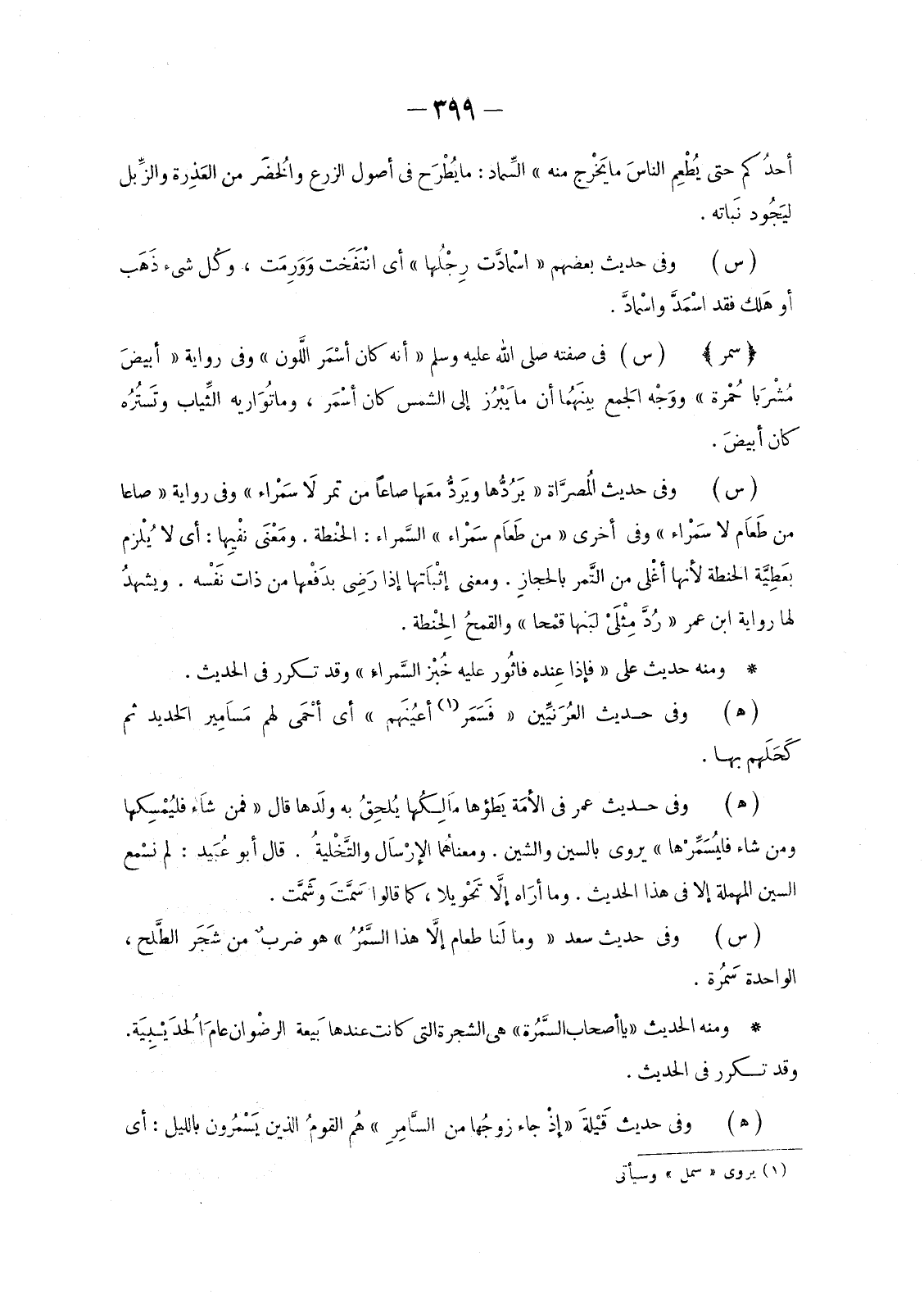 (س) وَفِي حَدِيثِ سَعْدٍ «وَمَا لَنا طَعَامٌ إلاَّ هَذَا السَّمْرُ» هُوَ ضربٌ مِنْ شجَرَ الطَّلح، الْوَاحِدَةُ سَمُرَةٌ.