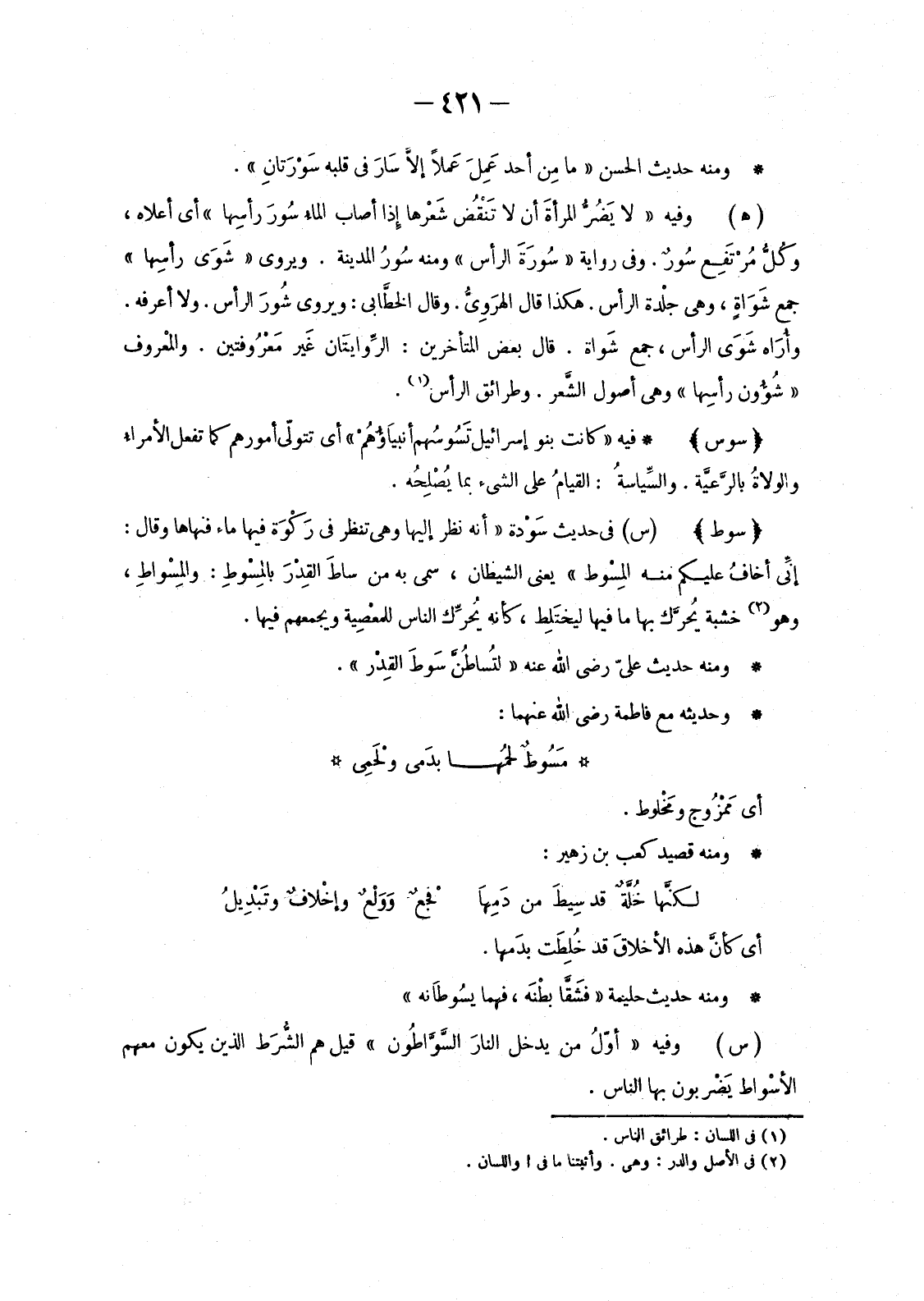 وَمِنْهُ حَدِيثُ عَلِيٍّ رَضِيَ اللَّهُ عَنْهُ «لَتْسَاطُنَّ سَوْطَ القِدْر» .