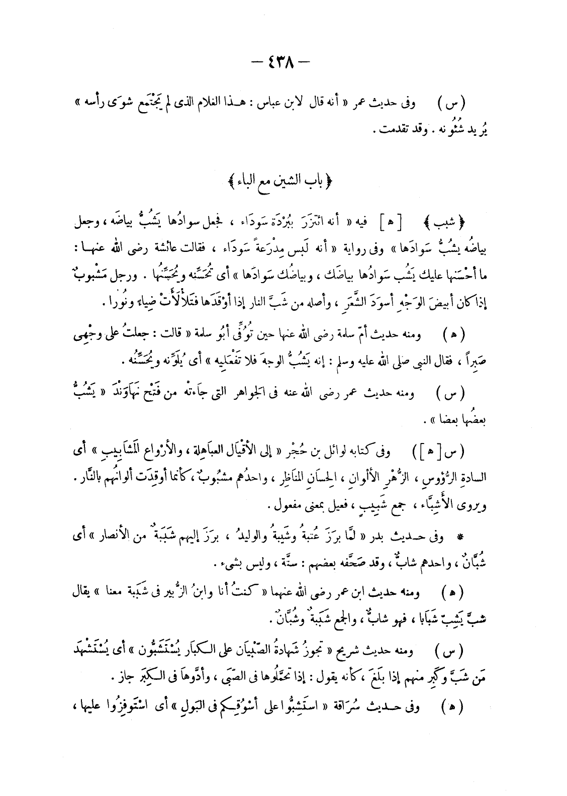 (س [هـ] ) وَفِي كِتَابِهِ لِوَائِلِ بْنِ حُجْر «إِلَى الأقْياَل العباَهِلة، والأرْواع الْمَشَابِيبِ» أى السادة الرّؤوس، الزُّهْرِ الْأَلْوَانِ، الْحِسَانِ المناَظِر، واحدُهم مَشْبُوبٌ، كَأَنَّمَا أوقِدَت ألوانُهم بالنَّار.