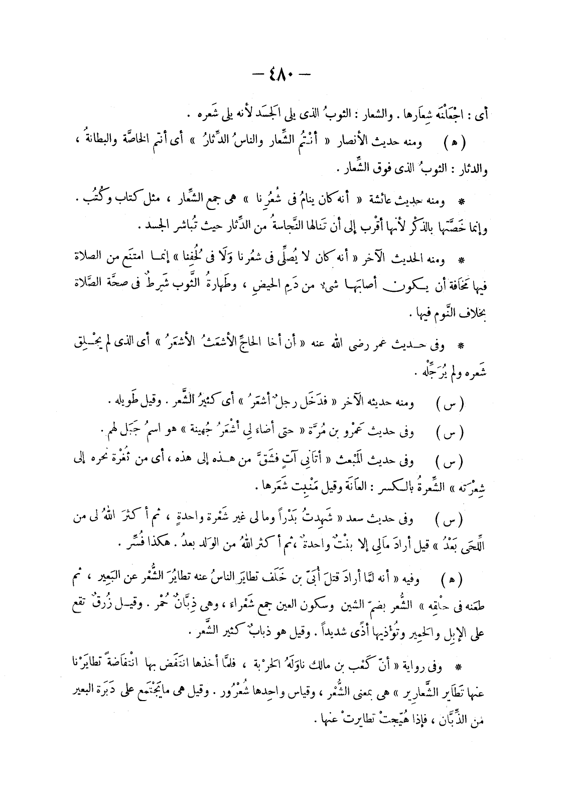 (س) وَمِنْهُ حَدِيثُهُ الْآخَرُ «فدَخَل رجلٌ أَشْعَرُ» أَيْ كثيرُ الشَّعْرِ. وَقِيلَ طَوِيلُهُ.