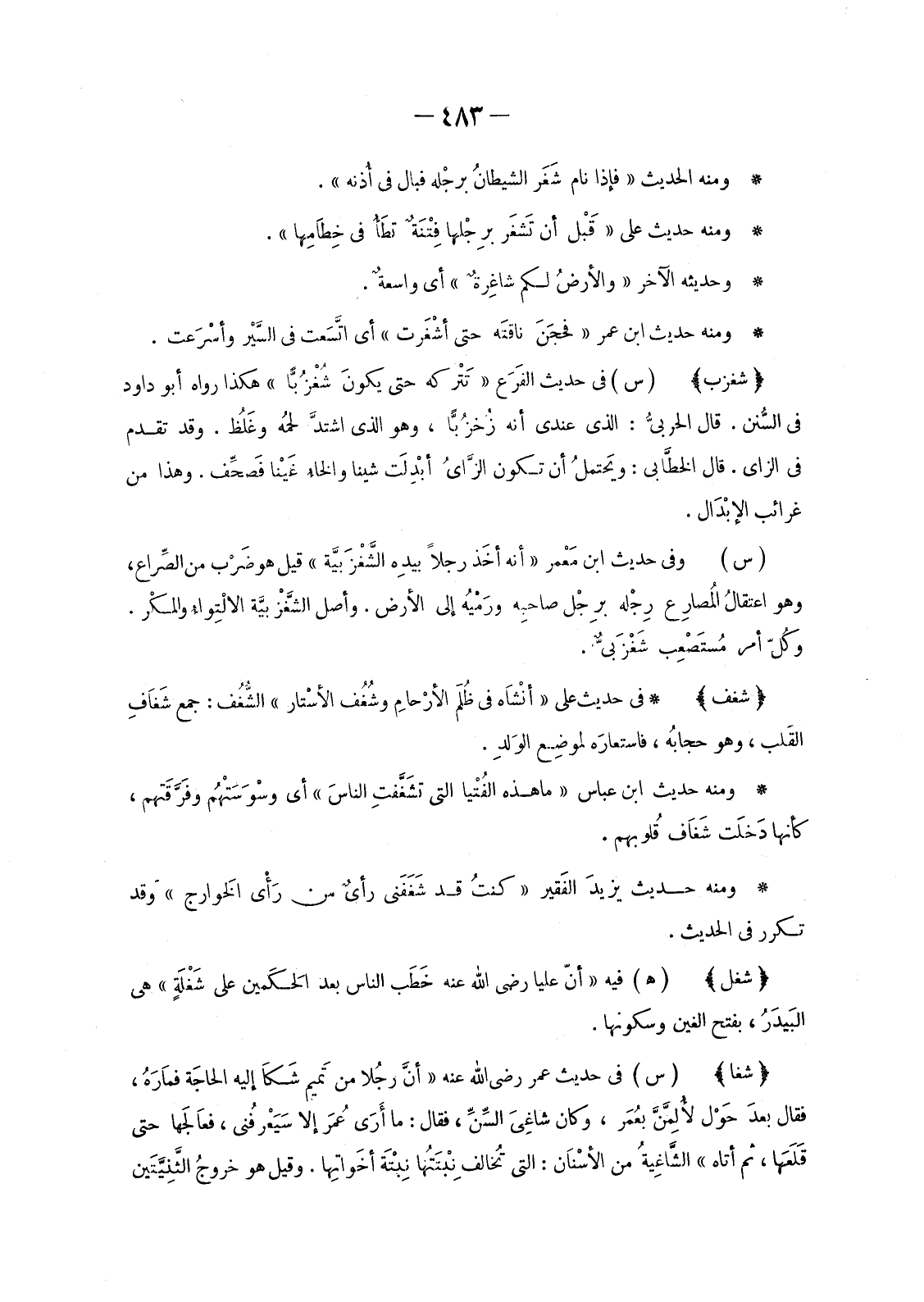 وَمِنْهُ الْحَدِيثُ «فَإِذَا نَامَ شَغَرَ الشيطانُ بِرِجْلِه فَبَالَ فِي أُذنه» .