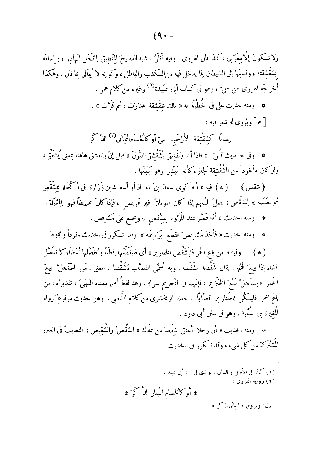 وَلَا تكونُ إلاَّ لِلعَرَبي، كَذَا قَالَ الْهَرَوِيُّ. وَفِيهِ نَظَرٌ. شَبَّهَ الفصيحَ المِنْطِيقْ بالفَحْل الْهاَدِر، ولِسانَه بِشِقْشِقَتِهِ، ونسبَها إِلَى الشَّيْطَانِ لمِا يَدْخُلُ فِيهِ مِنَ الْكَذِبِ وَالْبَاطِلِ، وكونِه لَا يُباَلي بِمَا قَالَ. وَهَكَذَا أخرَجَه الْهَرَوِيُّ عَنْ عَلِيٍّ، وَهُوَ فِي كِتَابِ أَبِي عُبَيدة «1» وَغَيْرِهِ مِنْ كَلَامِ عُمَرَ.
