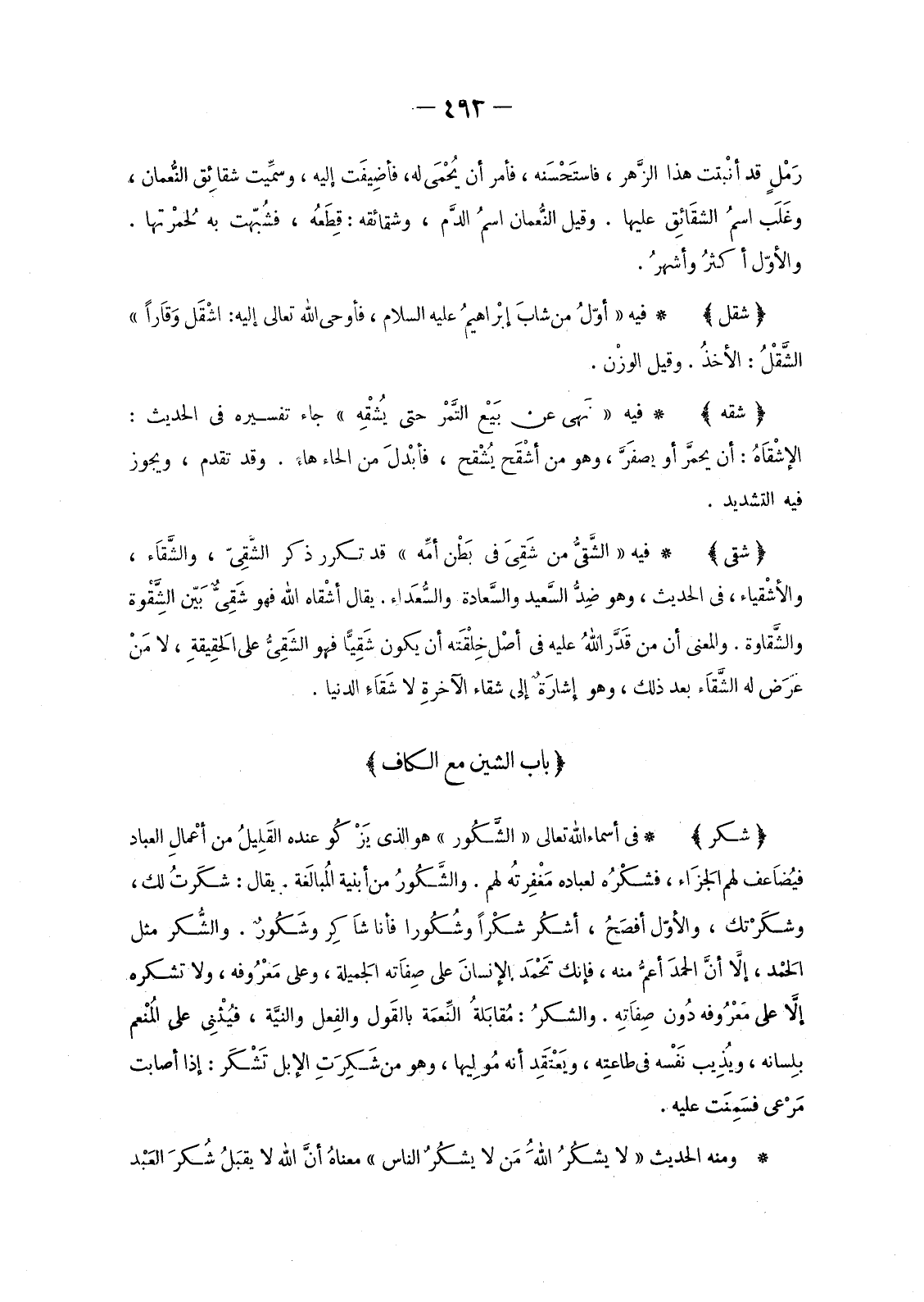بَابُ الشِّينِ مَعَ الْكَافِ