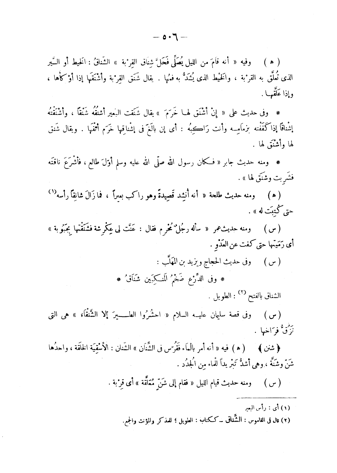 (2) قال في القاموس: الشِّناق- ككتاب: الطويل؛ للمذكر والمؤنث والجمع.